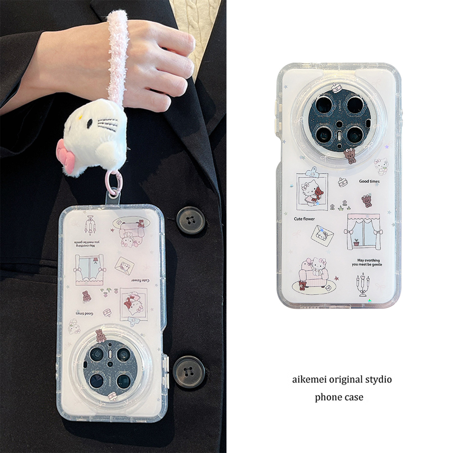 适用华为mate70pro+手机壳日韩可爱卡通窗户沙发猫咪mate60pro毛绒公仔手绳mate70奶油壳pura70pro防摔男女款