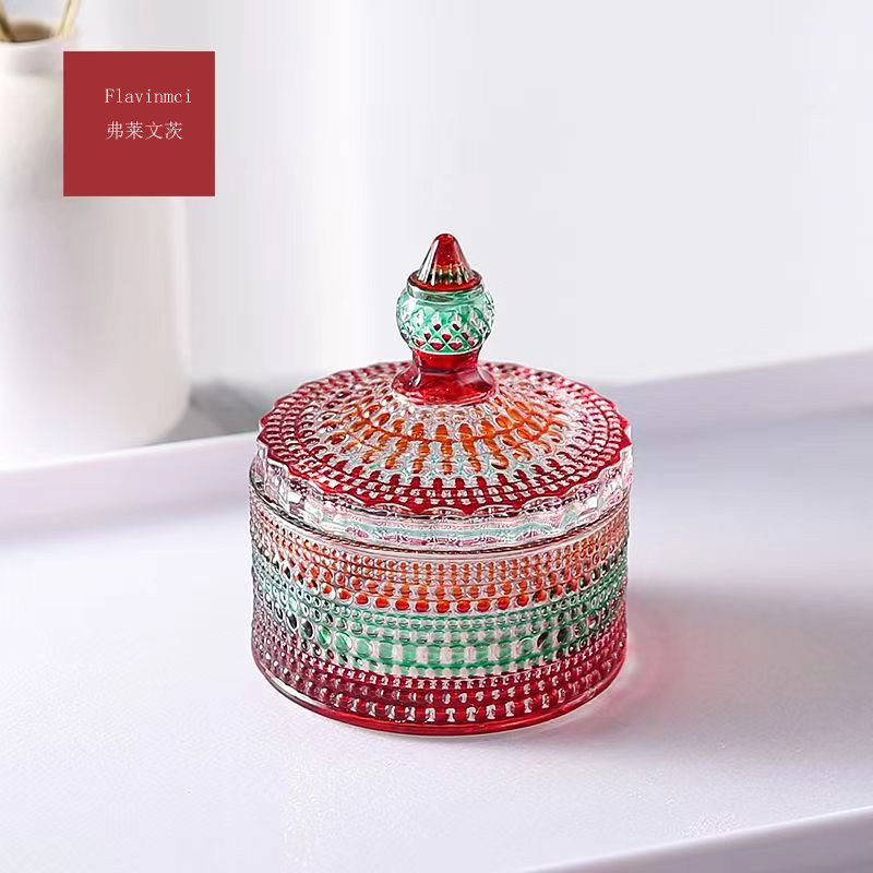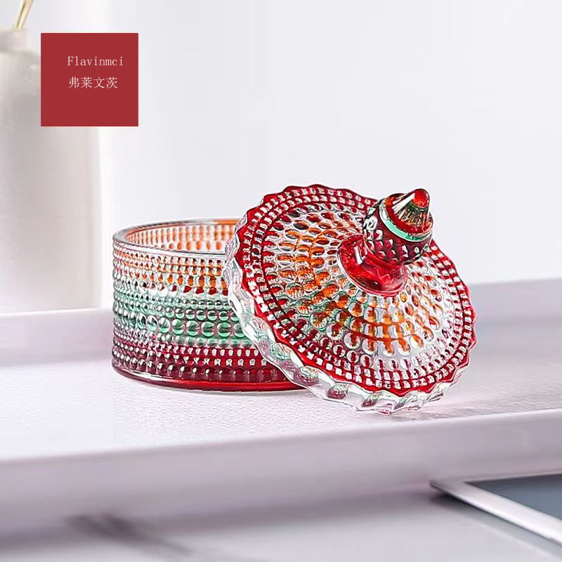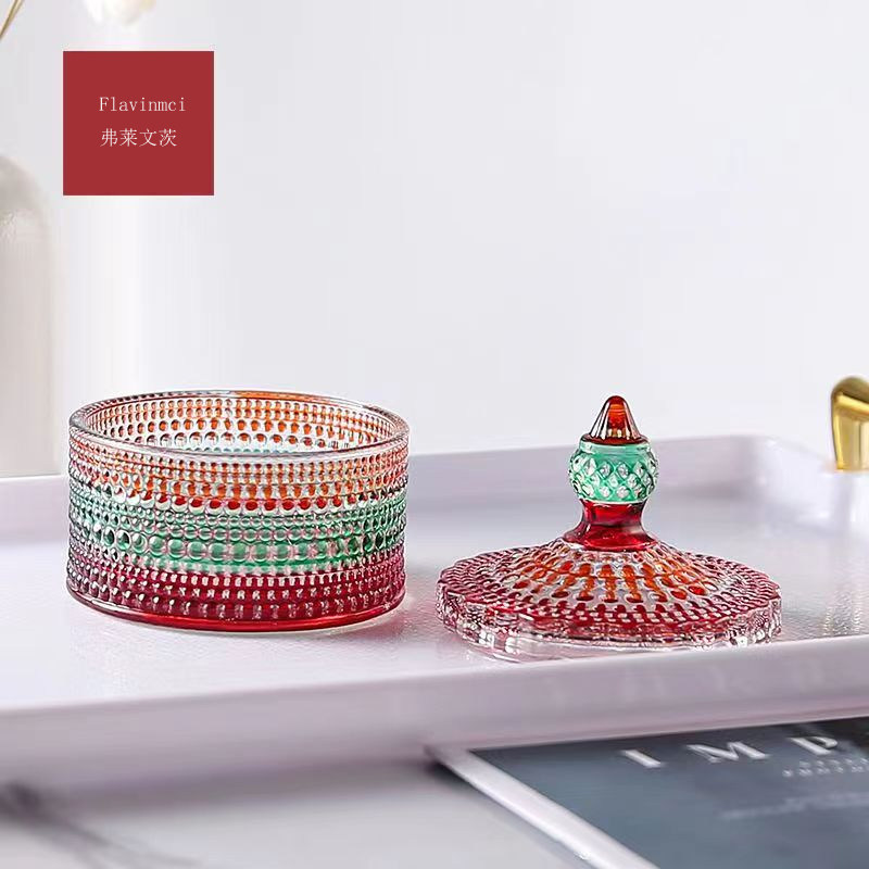弗莱文茨水晶玻璃七彩色糖果罐干果罐糖缸家居摆件储物罐零食罐