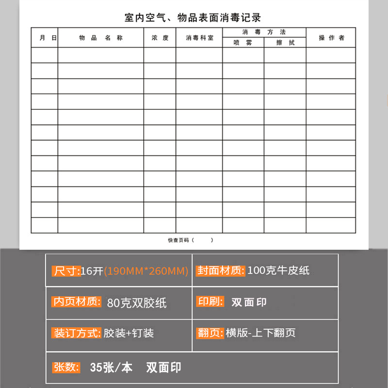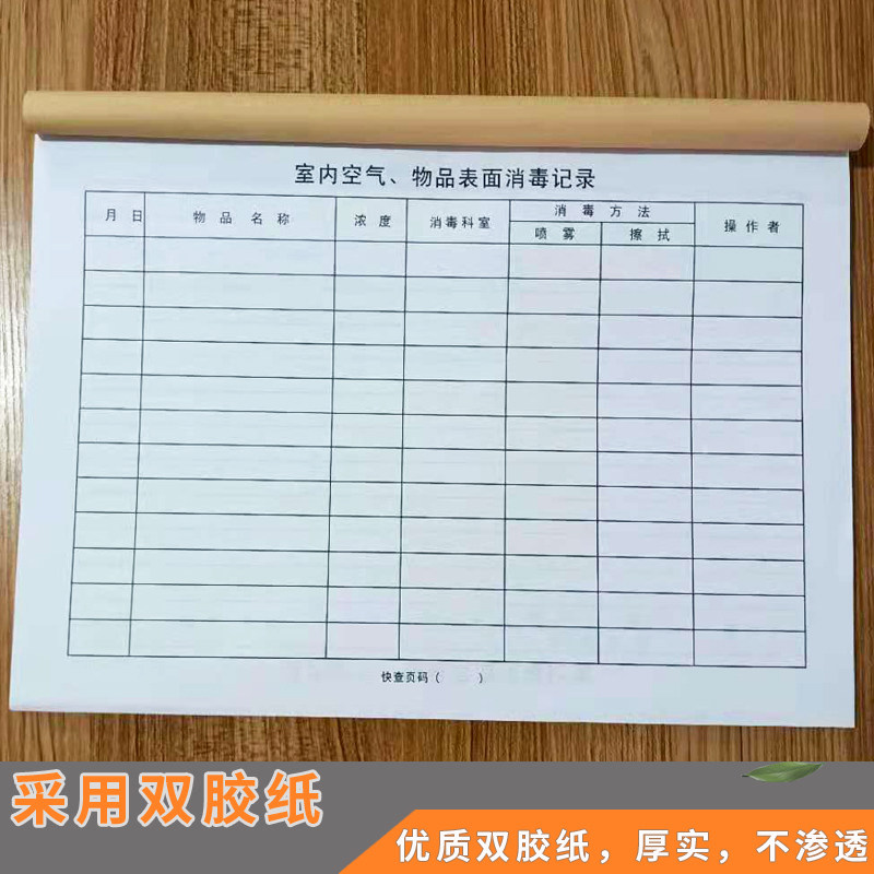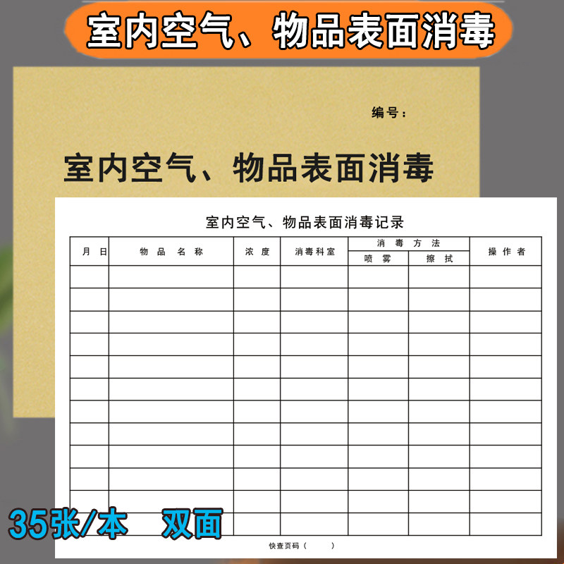 空气 物品表面记录本消毒紫外线登记簿物体表面登记室内高压蒸汽灭菌诊疗擦拭记录治疗室操作台地面医疗器具