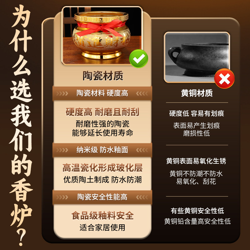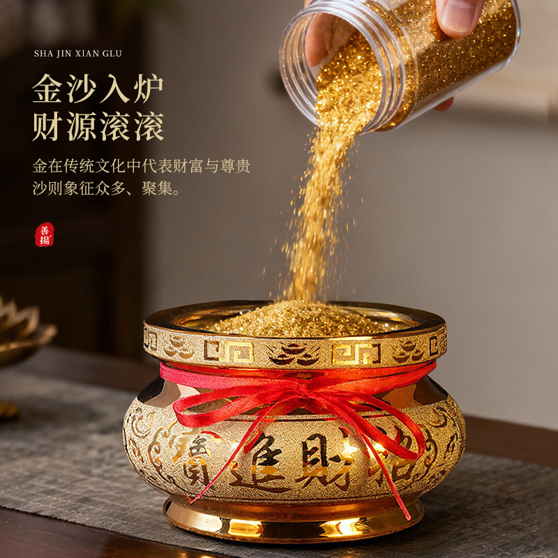 香炉家用供奉上香室内陶瓷沙金香炉招财神爷碗小烧香炉灰佛具用品
