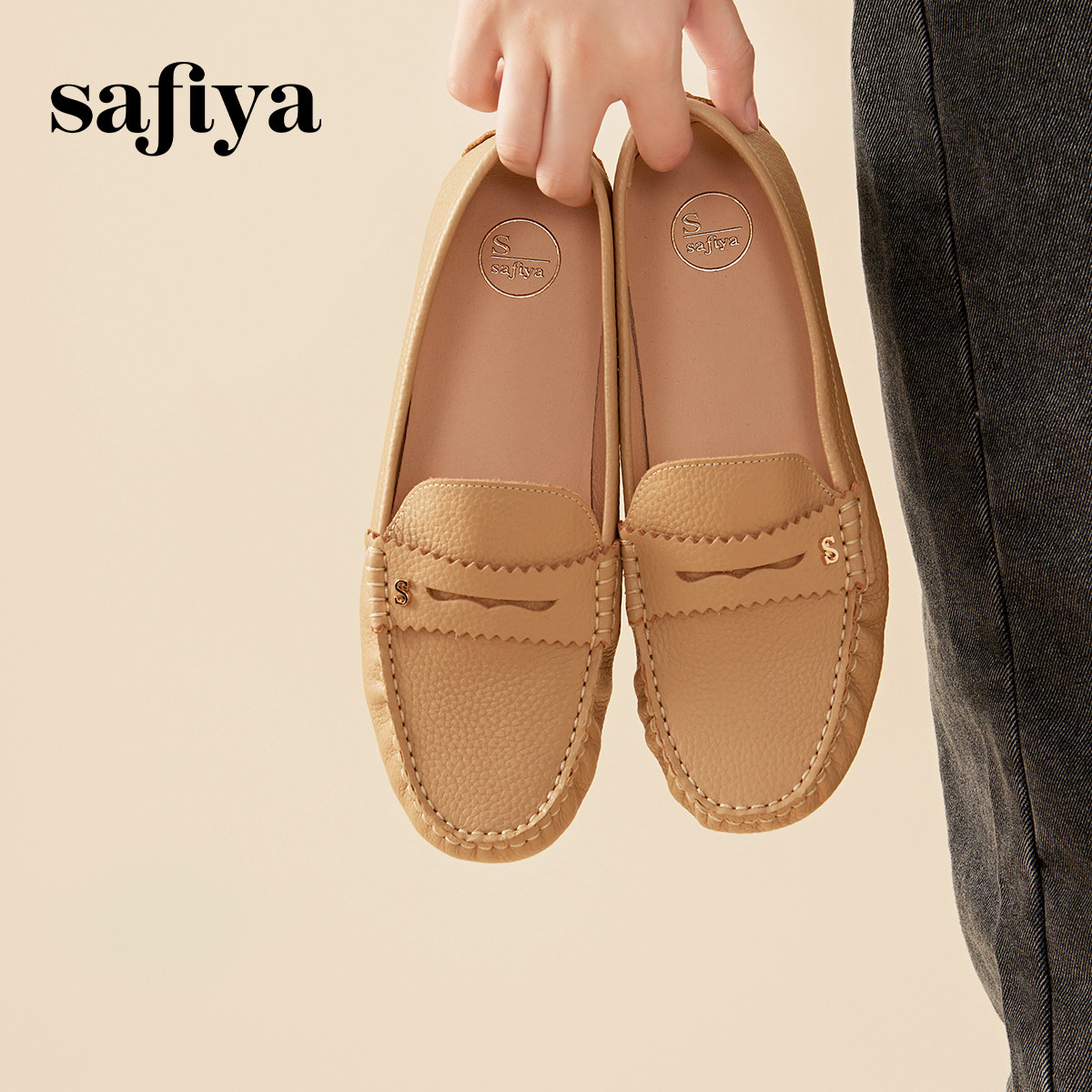 Safiya/索菲娅新款云感舒适软底真皮浅口百搭休闲低跟单鞋