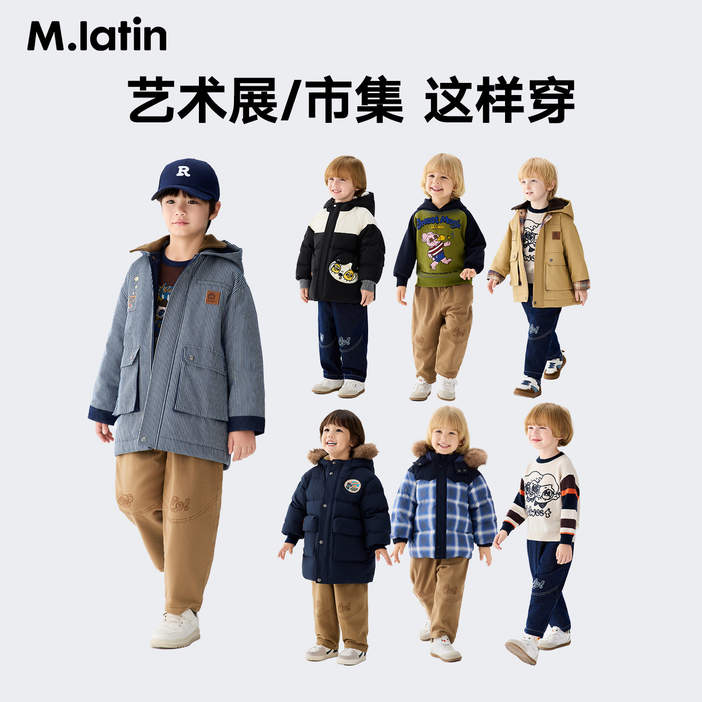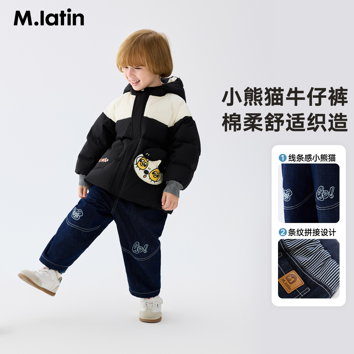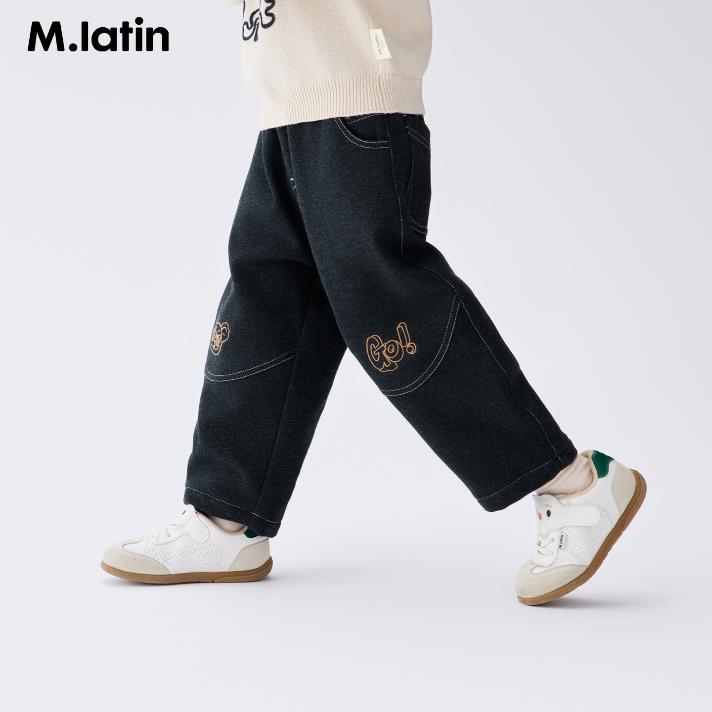 马拉丁儿童裤子25冬装新款男大小童拼接设计趣味绣花牛仔长裤