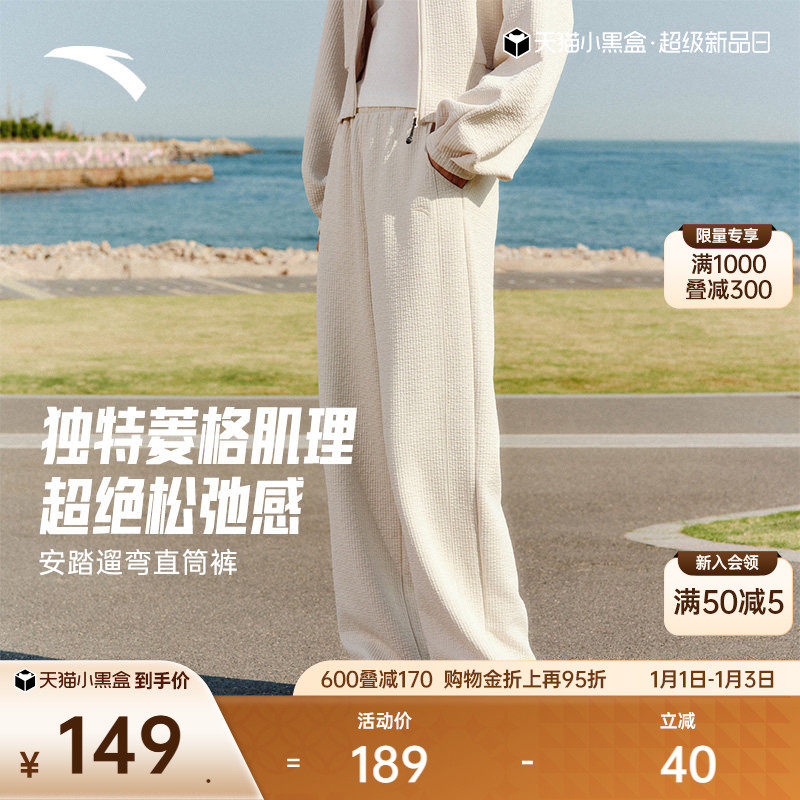 安踏自由裤丨直筒裤慵懒风休闲长裤女裤新款设计感肌理宽松阔腿裤