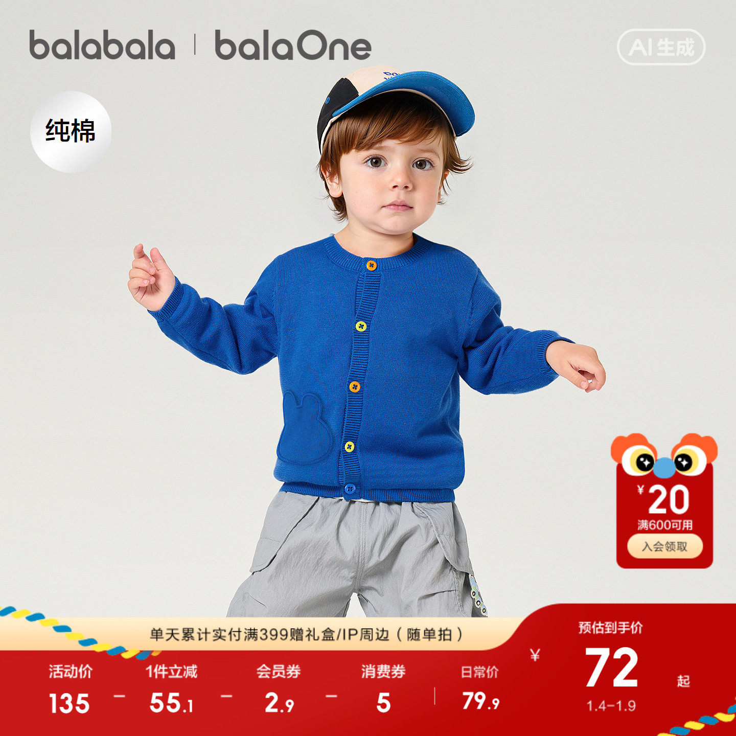 巴拉巴拉童装宝宝毛衣外套婴儿针织衫2026新款春装儿童薄开衫毛衫
