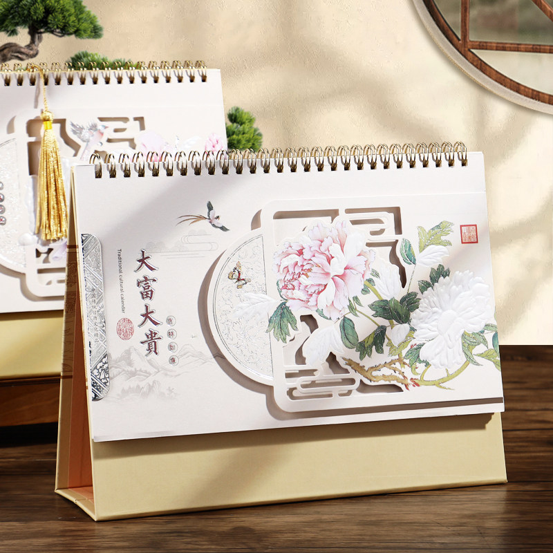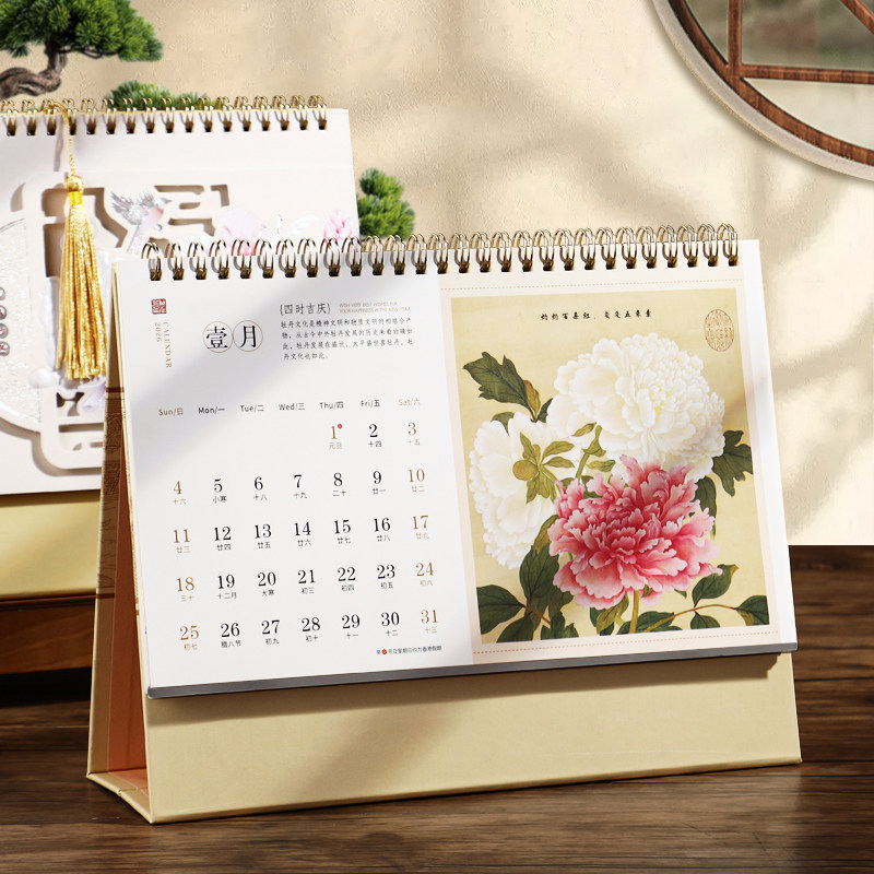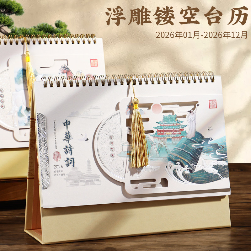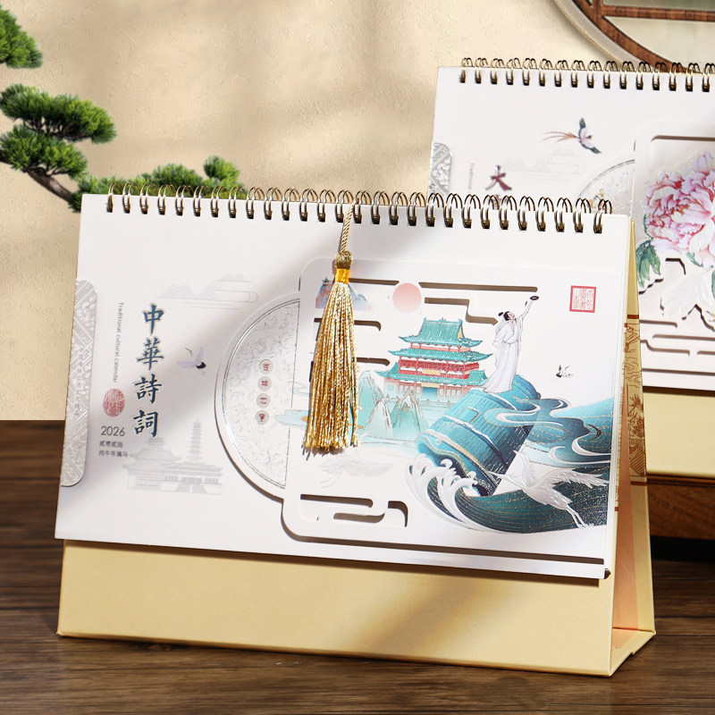 2026年新款台历中国风古典复古腰封流苏月历办公室桌面日历创意摆件定制广告logo创意日历企业定做打卡计划