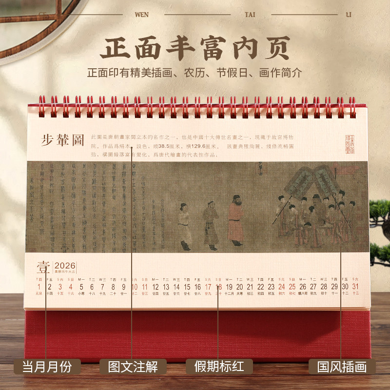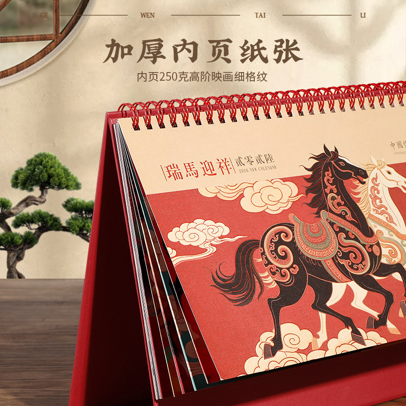2026年新款台历定制logo中国风古典腰封流苏浮雕月历办公室桌面创意摆件工作打卡计划本订制印刷内页广告月历