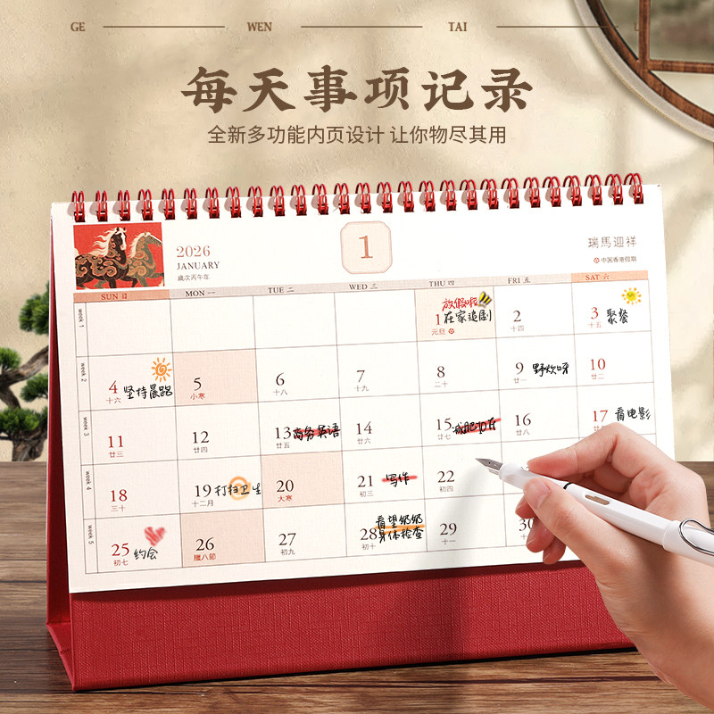 台历2026年新款日历定制logo创意简约小清新韩式办公年历个性中国风桌面摆件商务工作记事计划本订制广告月历