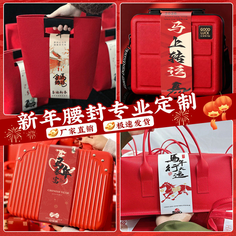 新年礼盒腰封定制公司过年送员工礼物包装封条2026马年礼品盒封套