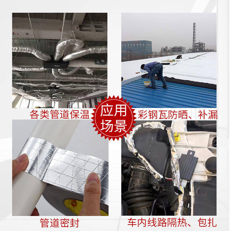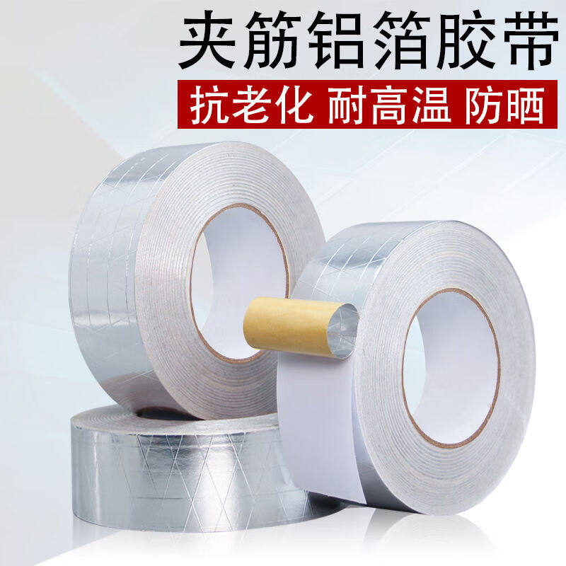 伏兴夹筋铝箔胶带隔热耐高温铝膜屏蔽铝箔胶布厚0.15mm宽10cm*50