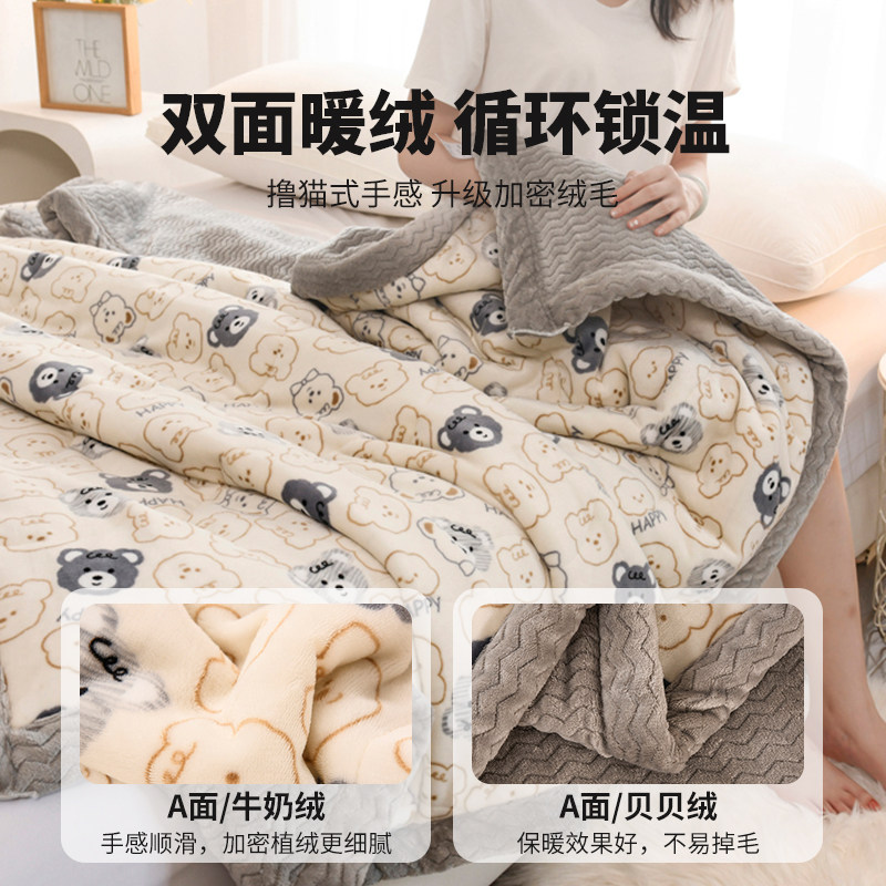 A类牛奶绒毛毯冬季盖毯可机洗单人宿舍毯披肩午睡毯双面绒床单厚
