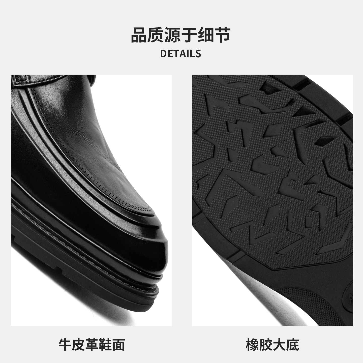 骆驼2025冬季舒适休闲加绒皮鞋男结婚新郎正装商务真皮增高德比鞋