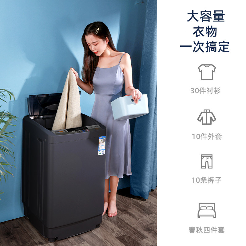 奥克斯8/10KG全自动洗衣机大容量家用波轮小型出租房宿舍洗脱一体