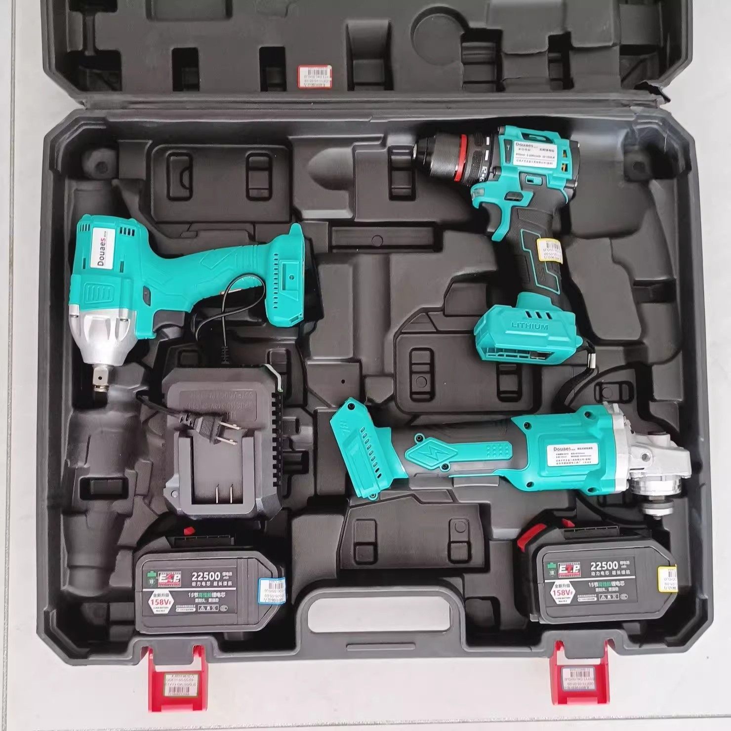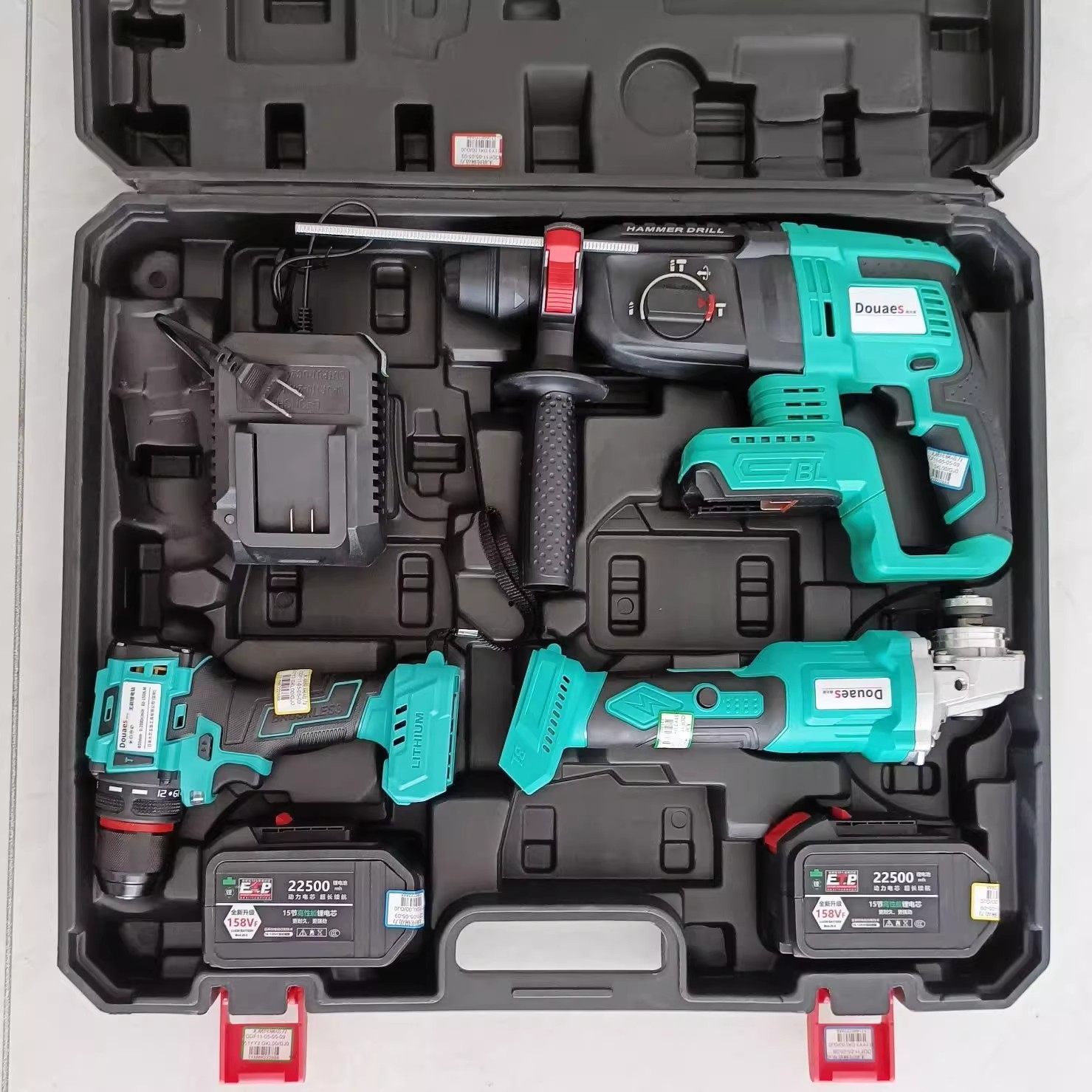 日本无刷充电电锤冲击钻角磨机电扳手电钻4件套15节锂电套装电镐