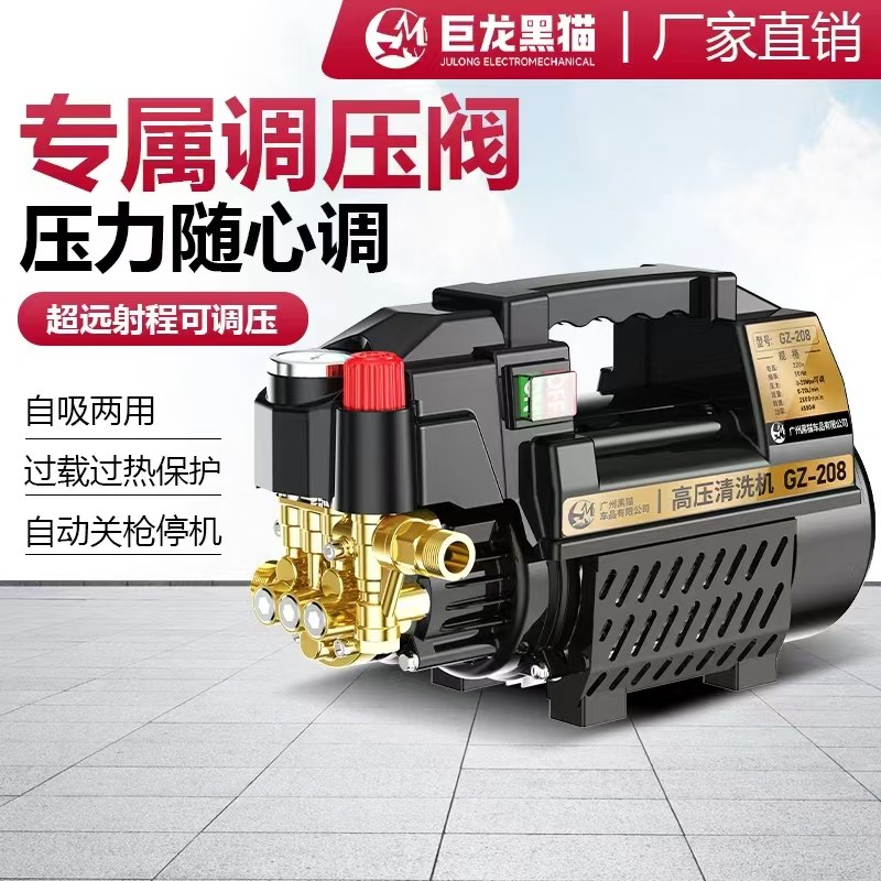 巨龙黑猫高压洗车机220V家用大功率全自动便携式清洗机可调压力