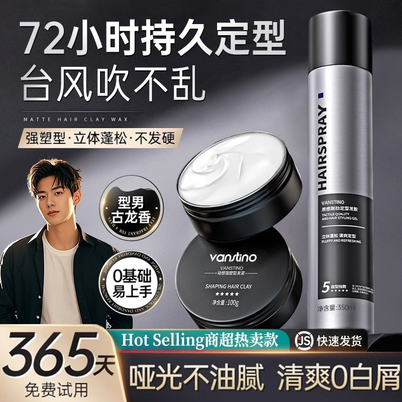 哑光发泥发蜡男士定型喷雾清香自然蓬松持久造型保湿发油啫喱膏