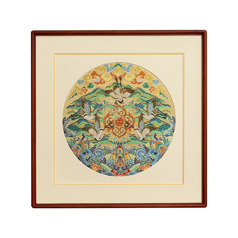 福鹤南京云锦研究所挂画客厅中式国风高档装饰画老人生日祝寿礼品