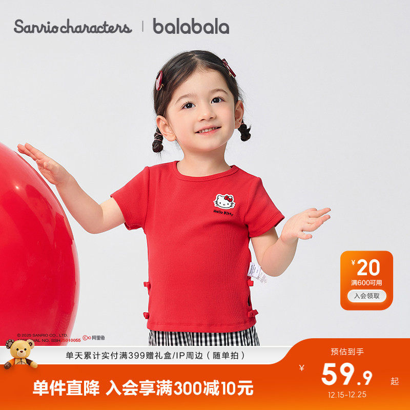 【HelloKittyIP】巴拉巴拉女童短袖T恤2025新款夏装镂空休闲上衣