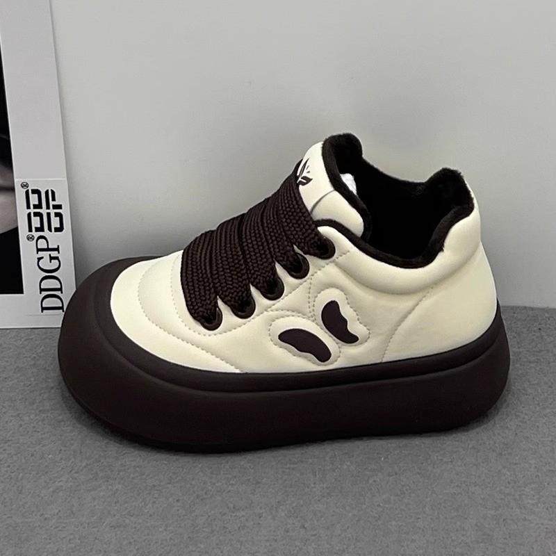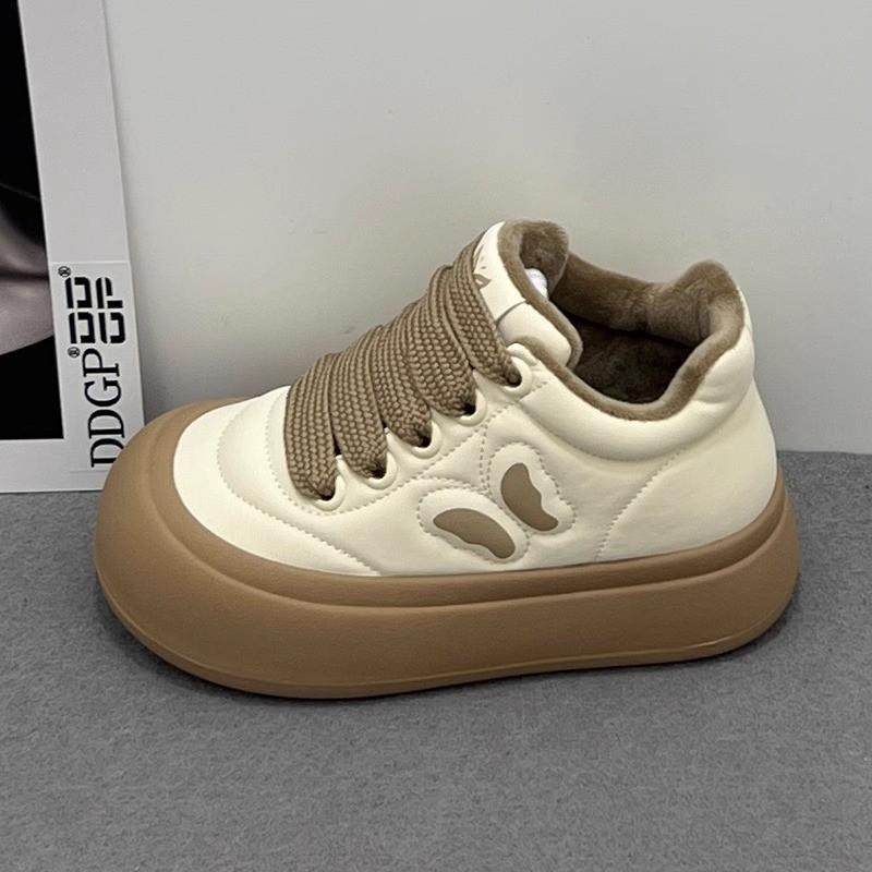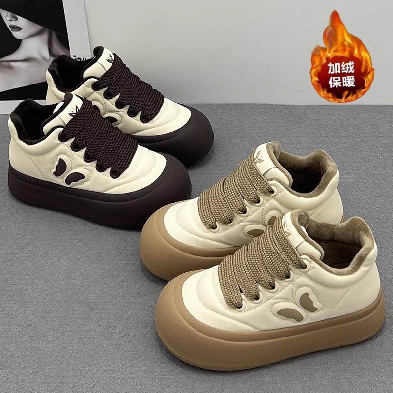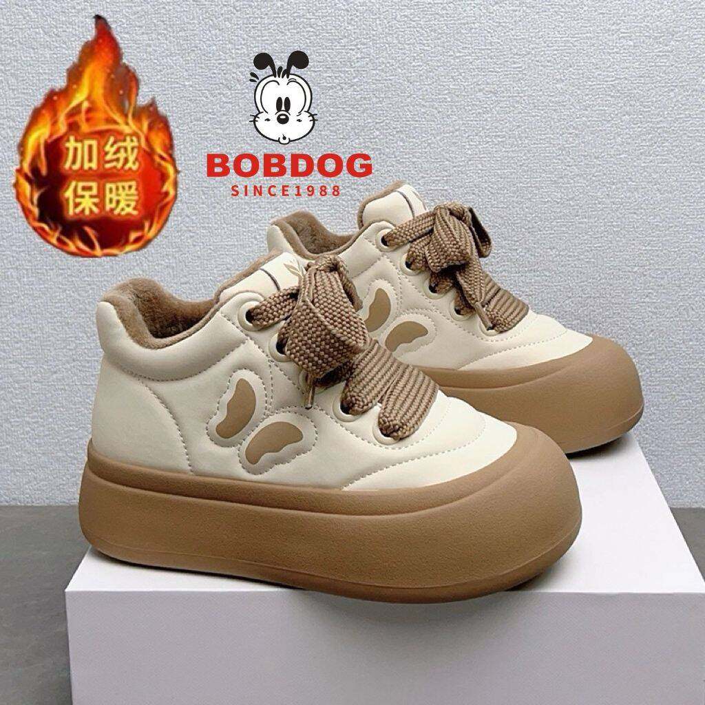 巴布豆小白鞋女2025新款冬季加绒保暖棉鞋厚底儿童运动板鞋潮防滑