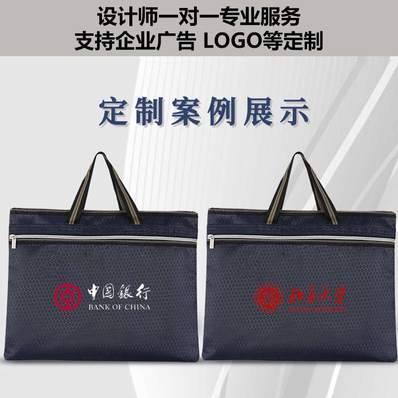 文件袋拉链式防水帆布牛津布资料收纳袋公文包定制男士女士双层商务办公手提袋企业单位会议培训资料袋印logo