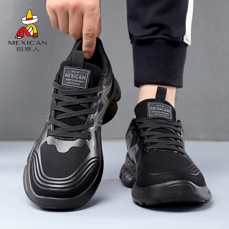 红蜻蜓男鞋秋冬2025新款男士运动休闲鞋网面透气防臭黑色增高鞋子