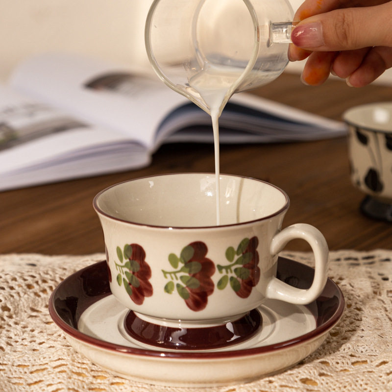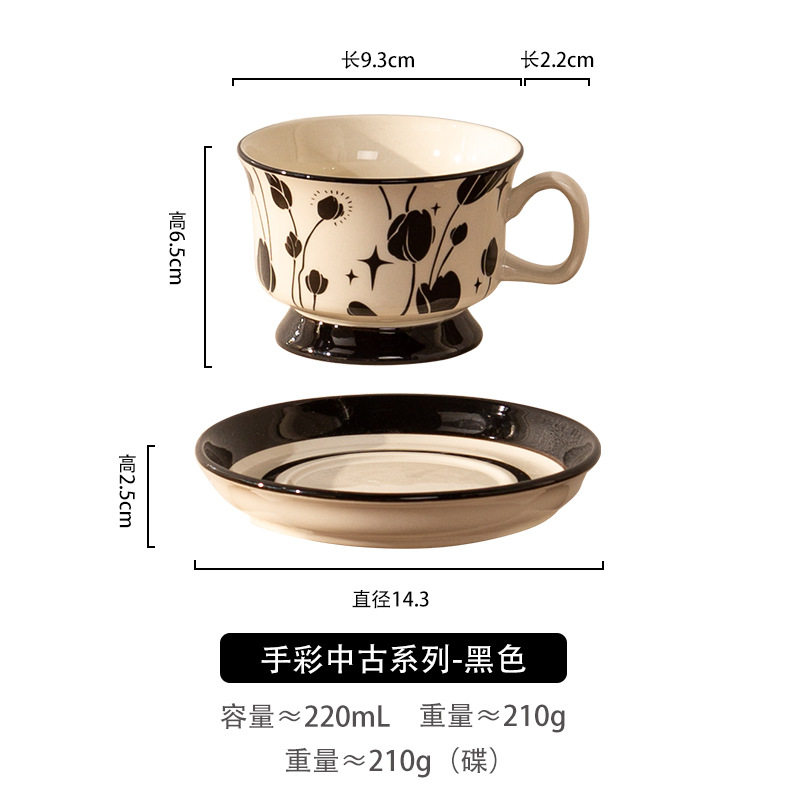 中古风咖啡杯手绘小众下午茶杯精致高颜值马克杯高级感咖啡杯