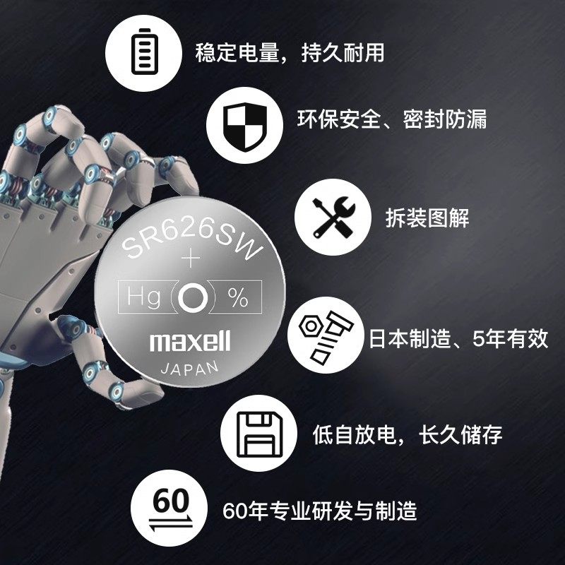麦克赛尔maxell日本进口337手表电池适用阿玛尼飞亚达罗西尼ck斯沃琪dw石英表氧化银纽扣小粒电子sr416sw通用