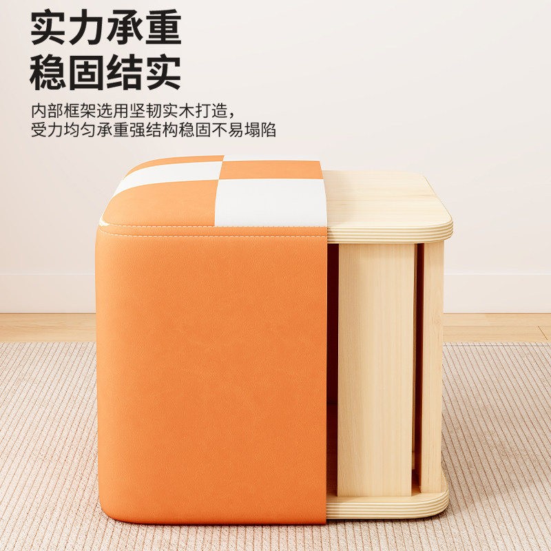 实木凳子家用可叠放软包板凳客厅木头矮凳简约现代小方凳餐桌椅子