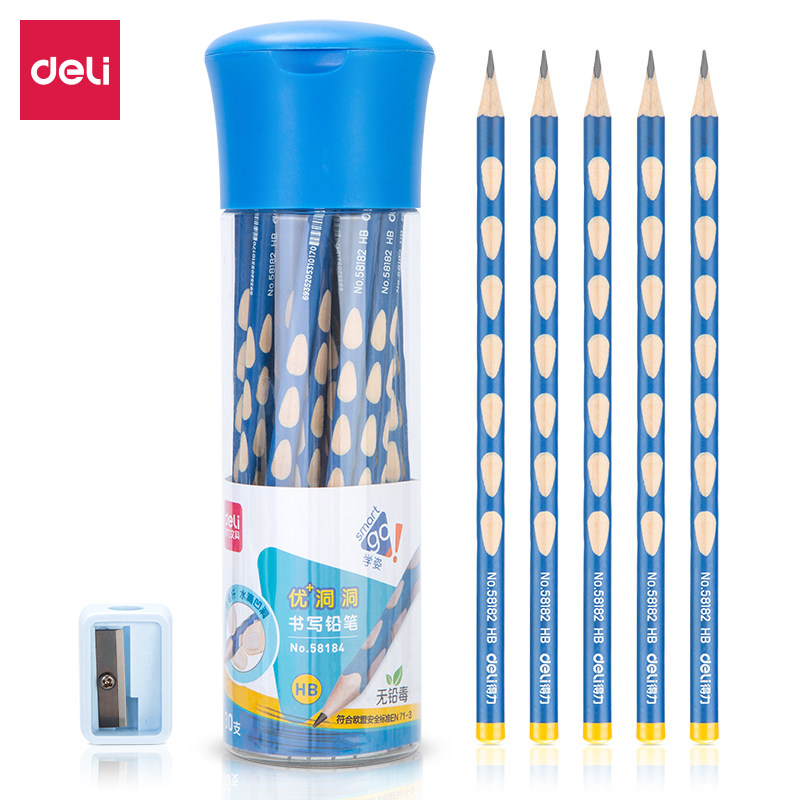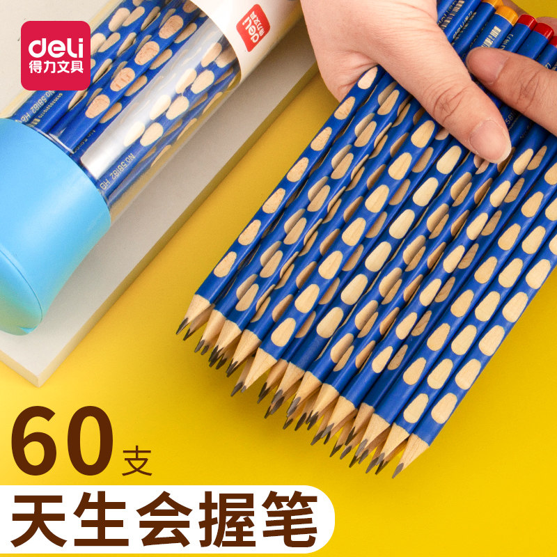 得力铅笔学生专用儿童洞洞笔2b比小学生一年级hb三角粗杆考试文具幼儿园普通练字笔书写可爱原木握姿矫正