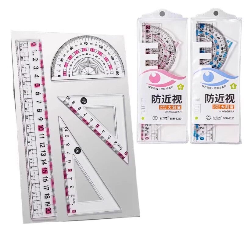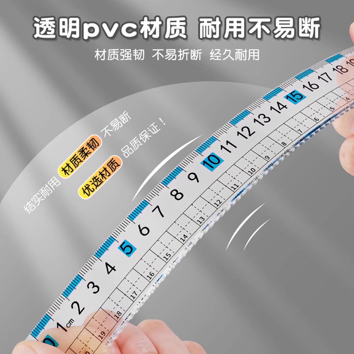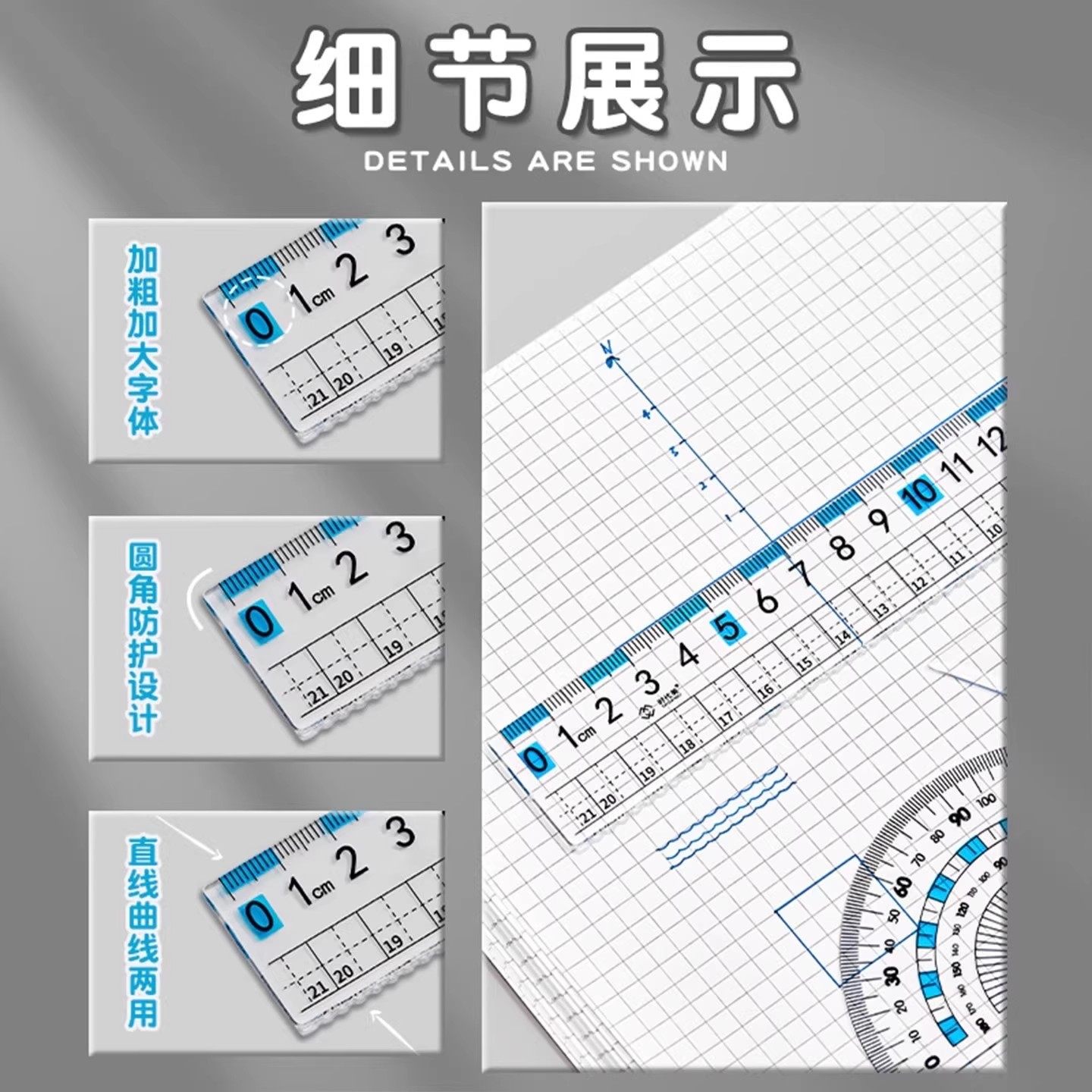 2025四件套尺尺子硬尺预防近视直尺小学生专用带波浪线多功能格尺20cm考试绘图划线刻度尺带老师函数高透开学