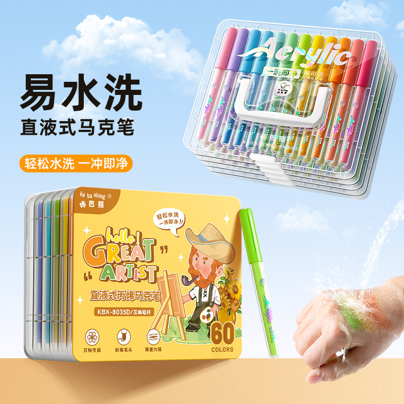 60色48色大容量丙烯马克笔盒装儿童专用可叠色不透纸幼儿园学生版软头丙烯笔可水洗水性水彩笔小孩画画笔