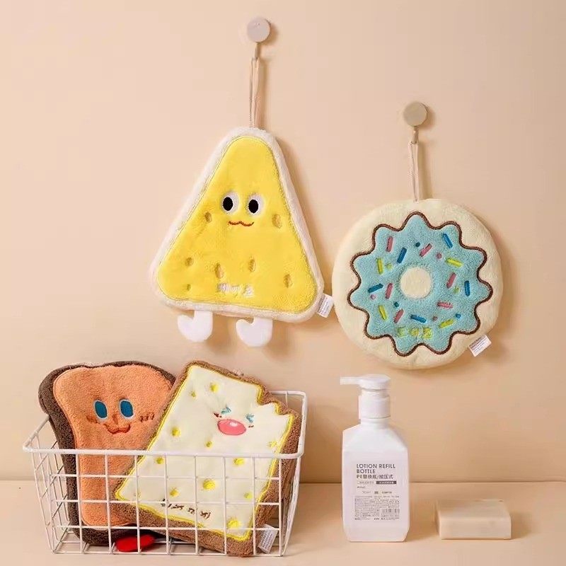 可爱擦手巾挂式吸水加厚卫生间卡通擦手帕毛巾洗手小方巾厨房抹布