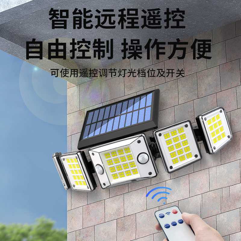 新款五头太阳能壁灯双感应户外防水人体感应灯庭院道路围墙照明灯