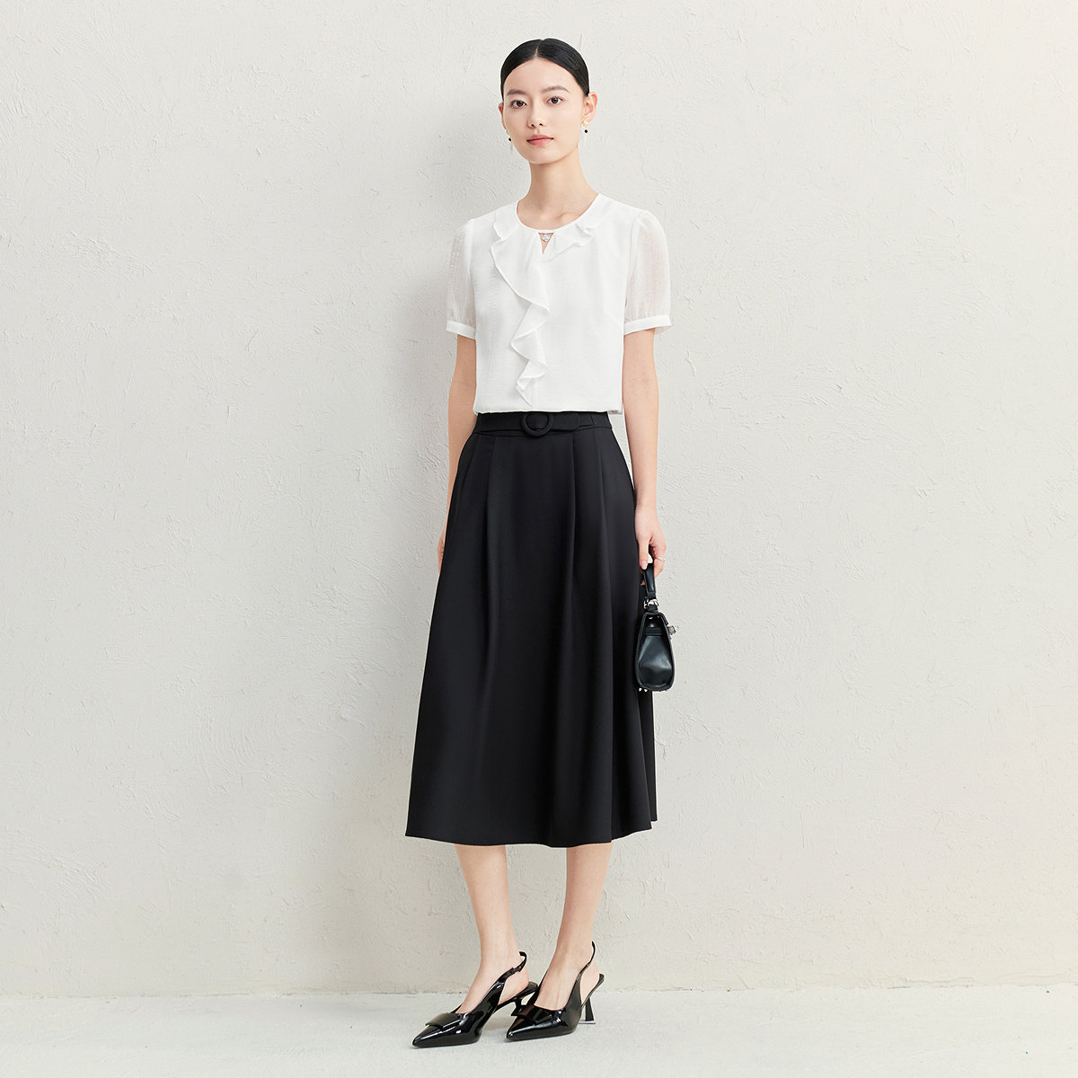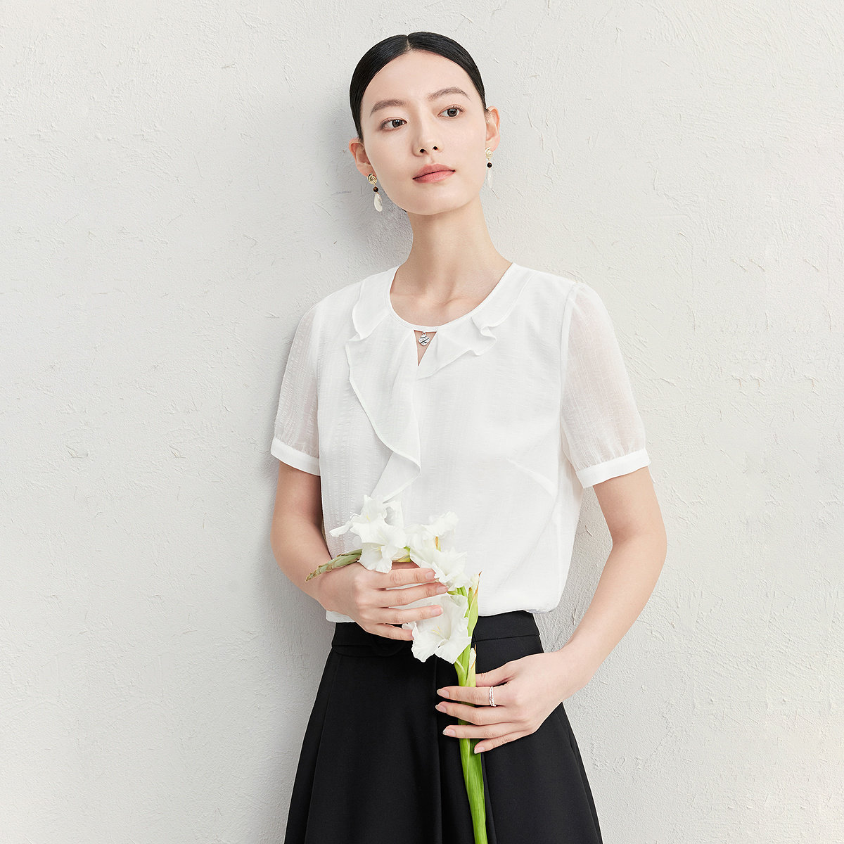 FINITY菲妮迪雪纺衫2026夏季新款简约设计感荷叶边气质短袖上衣女