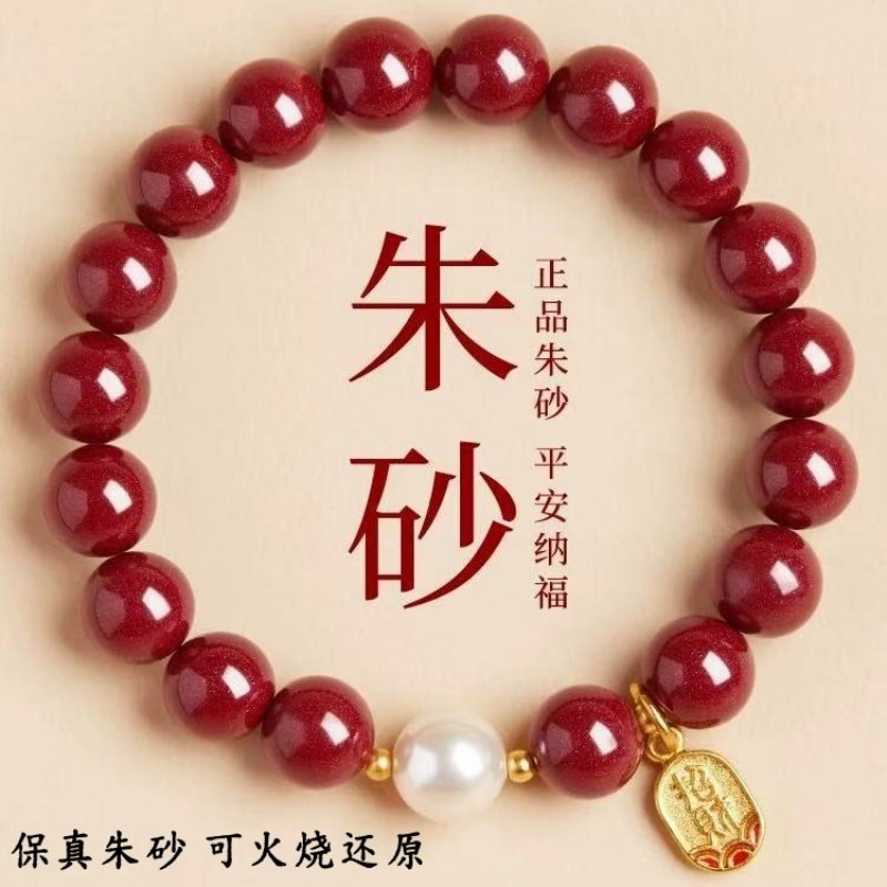 原矿纯正朱砂手串真货紫金砂红砂发财纳福珍珠手串女真品散批