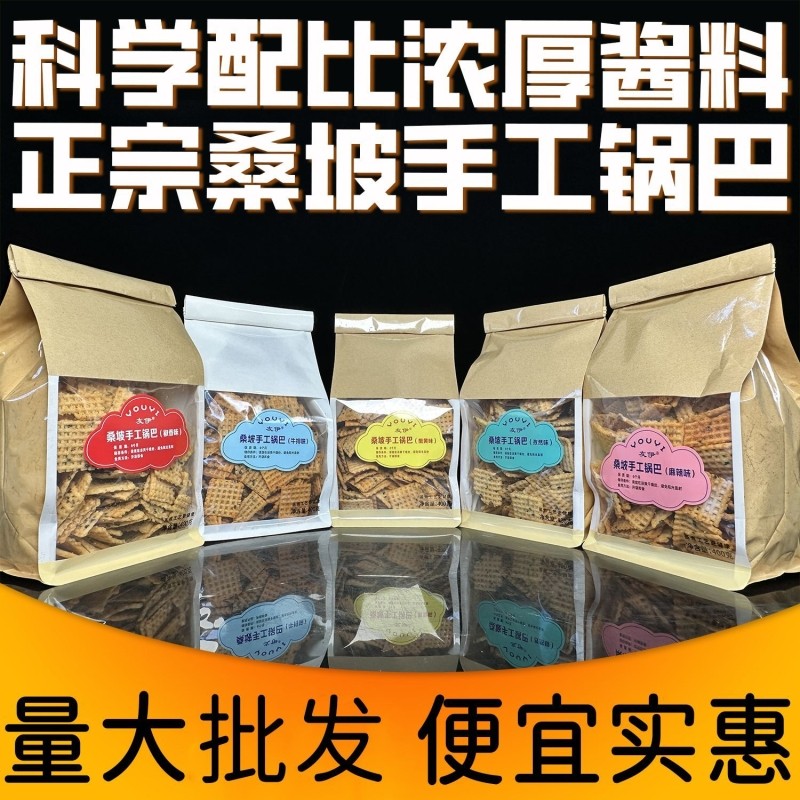 桑坡手工锅巴牛排麻辣椒香孜然蟹黄大米网红零食宿舍休闲袋装