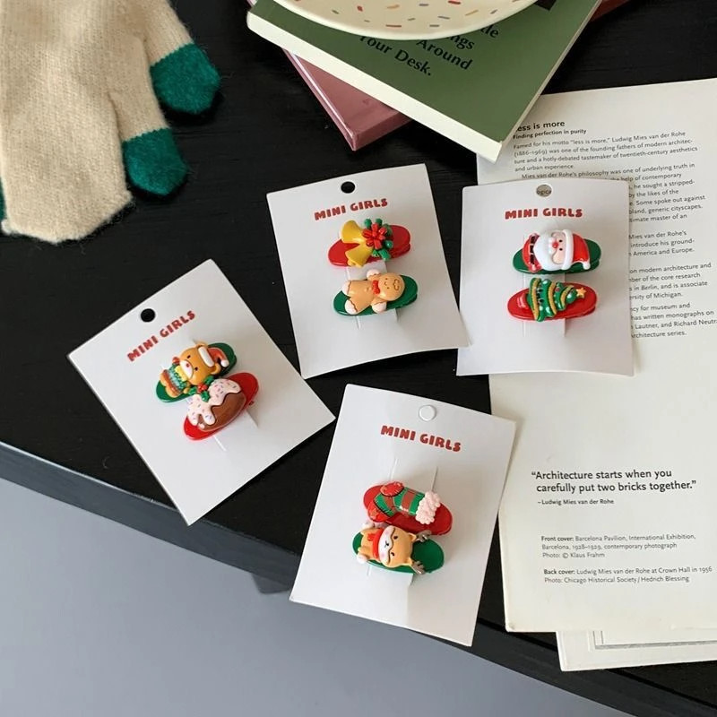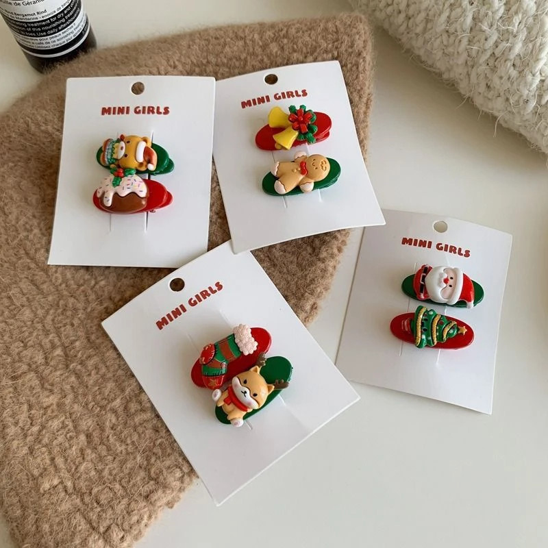 2025新款圣诞节少女发夹可爱刘海侧边发卡儿童节日氛围鸭嘴夹发饰