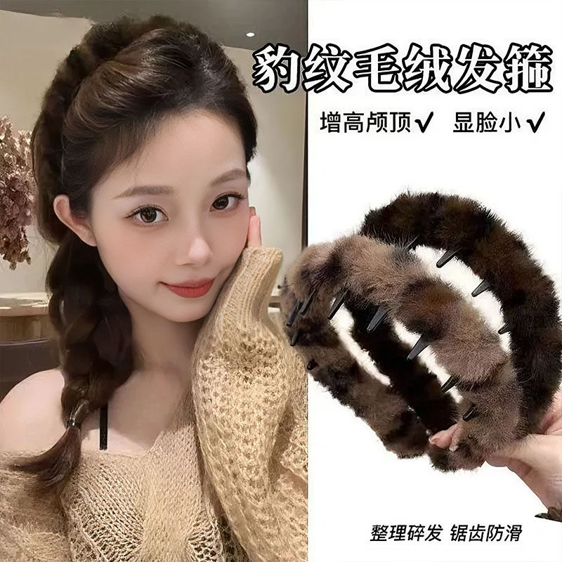 豹纹发箍女2026新款毛绒韩系复古带齿防滑洗脸化妆头箍年秋冬发卡