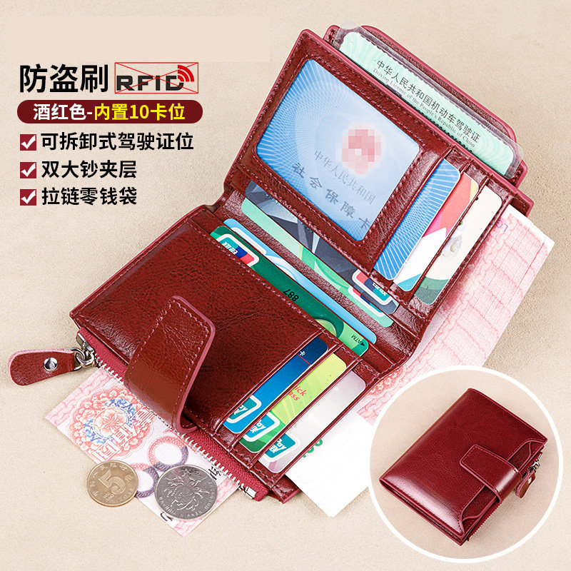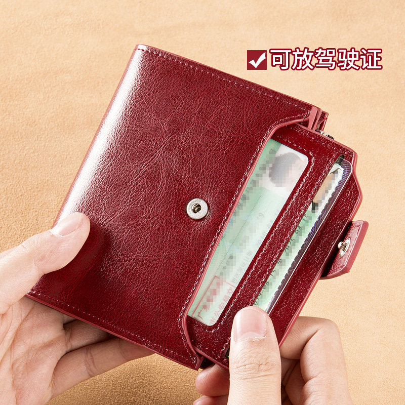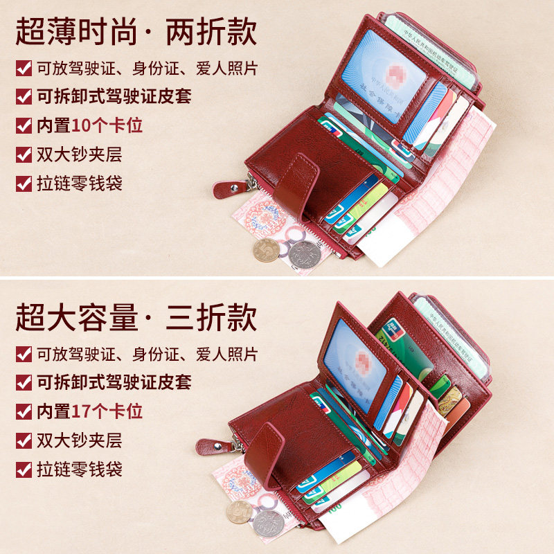 2026新款女士钱包女短款真皮质感拉链小卡包三折多功能驾驶证折叠