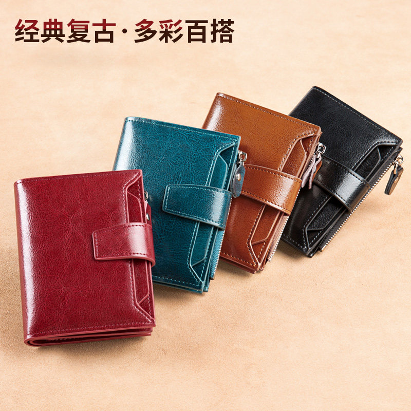 外贸出口尾货女士迷你拉链钱包真皮头层牛皮清仓手拿手抓女包卡包