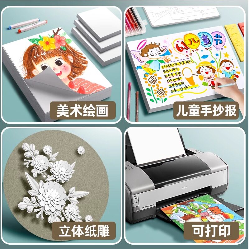 荷兰白卡纸8k卡纸美术专用绘画纸白色打印硬卡纸a4纸马克笔专用加厚卡纸四开画纸4K画画纸a3手抄报纸180g
