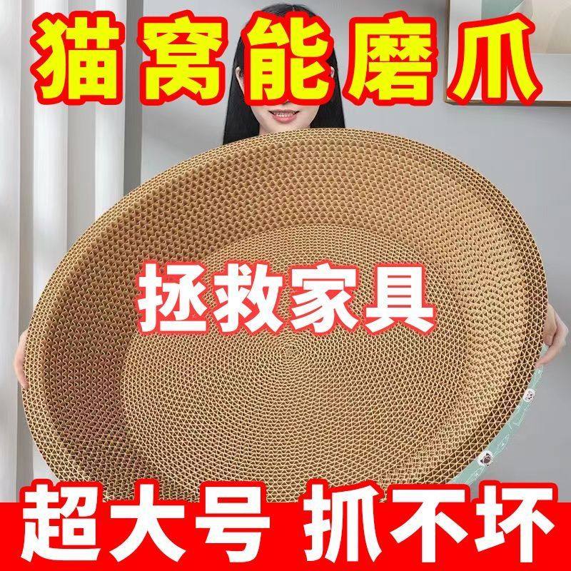 圆形猫抓板玩具耐磨不掉屑一体猫抓盆抓不烂猫爪板耐抓特大号猫窝