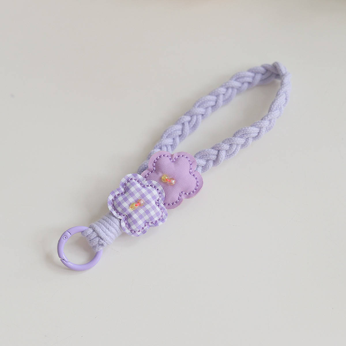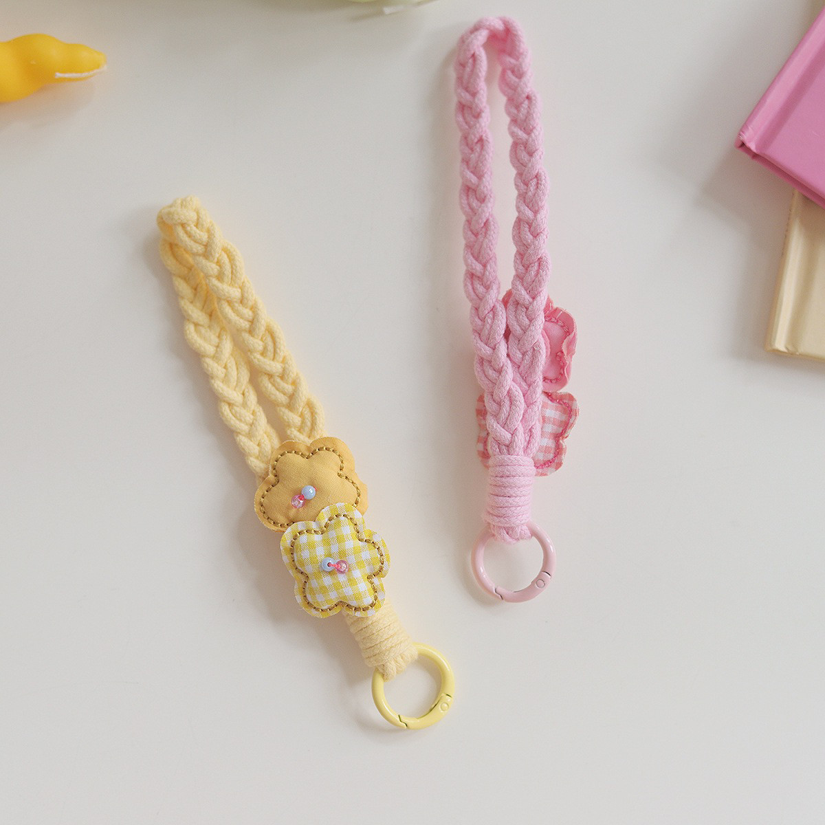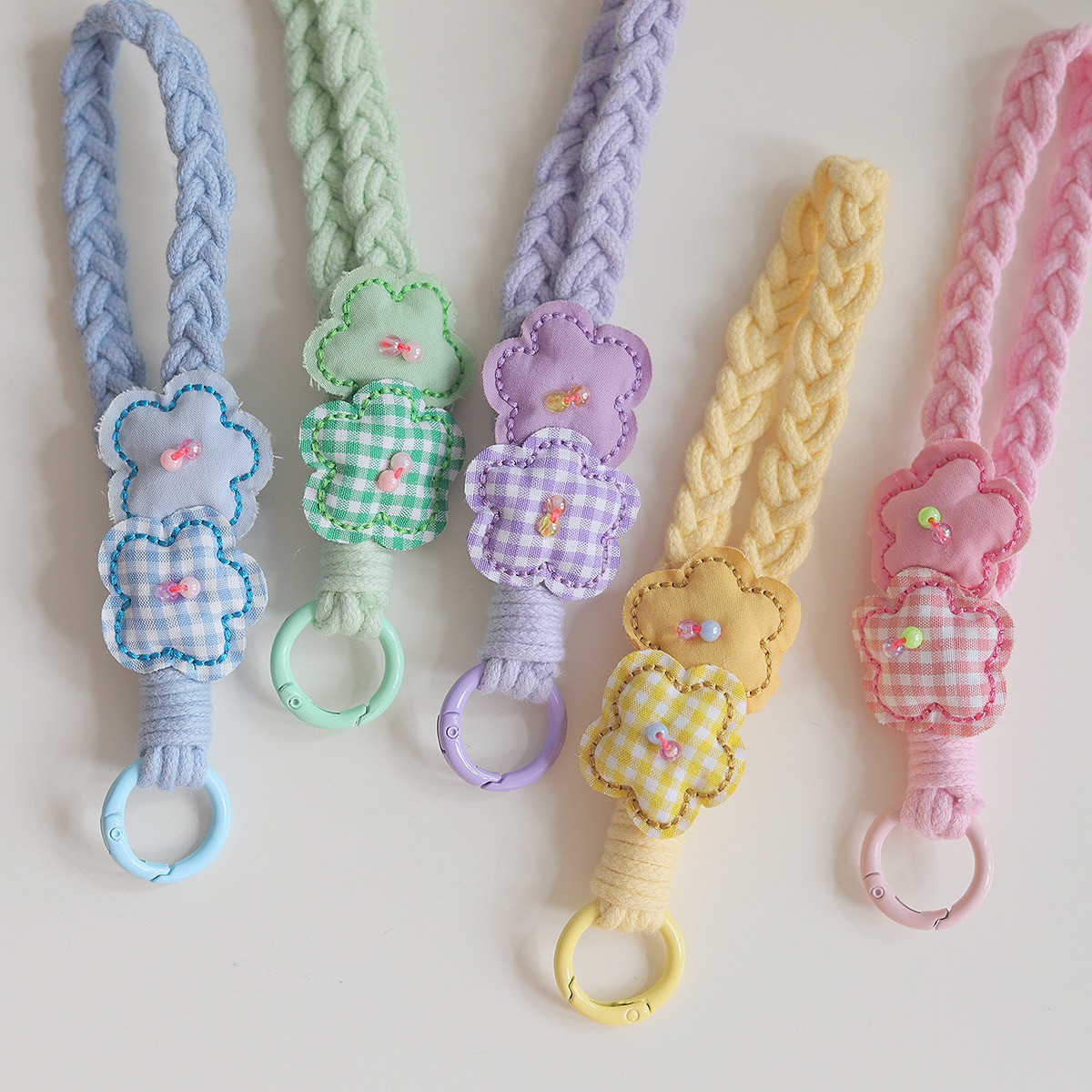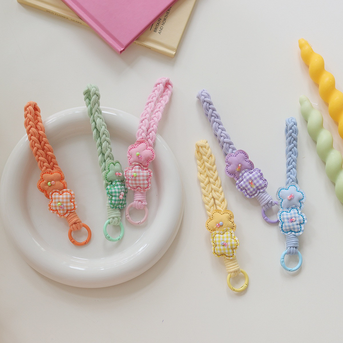 2025夏季可爱花朵钥匙扣手工编织糖果色少女感花花手腕带手机挂绳