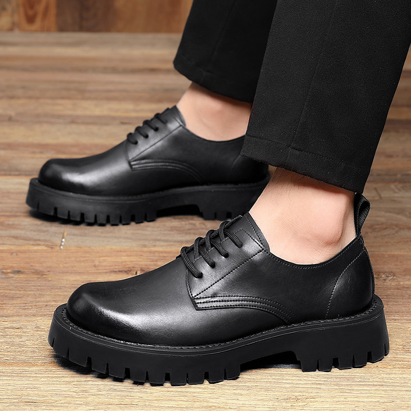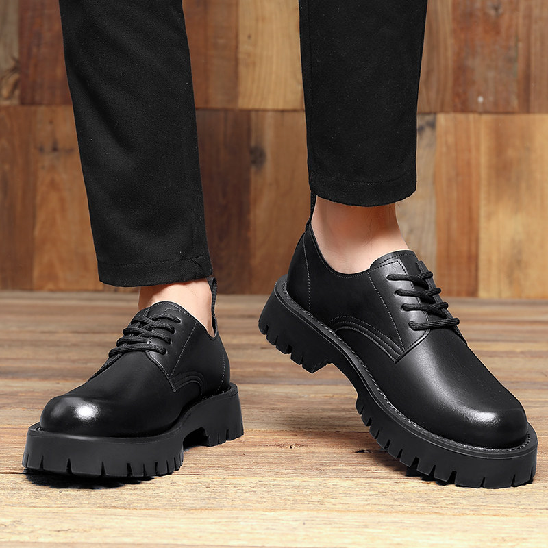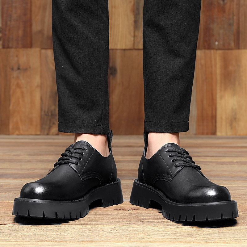 MRA德比鞋男款圆头大头鞋黑色工装鞋通勤马丁靴厚底增高休闲皮鞋