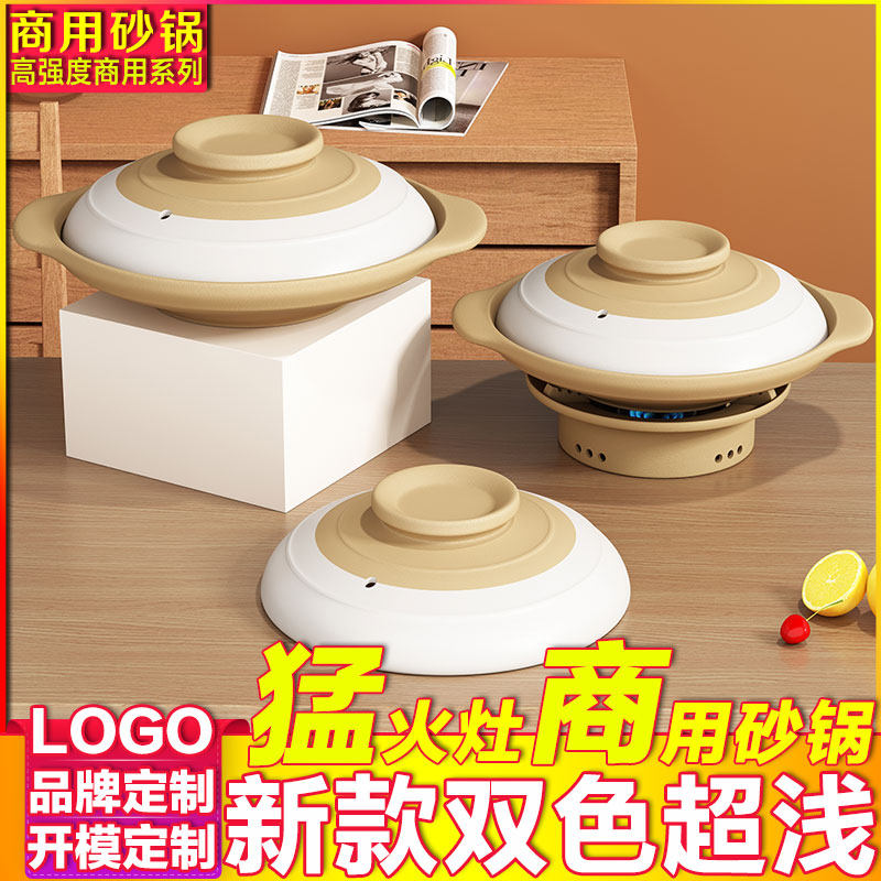 郸韵商用土陶酒精炉砂锅耐高温干烧不裂平底炖锅干锅专用沙锅新款