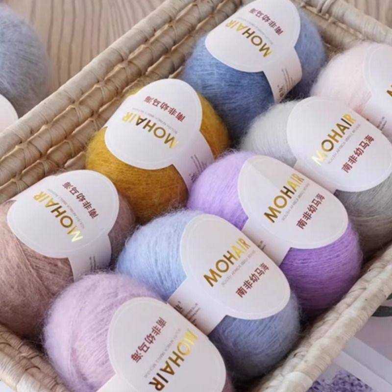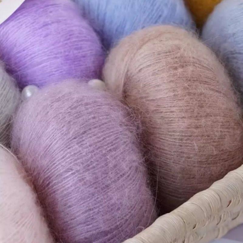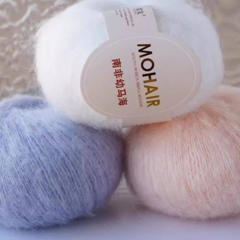 真丝马海毛毛线手工编织长毛绒线细线披肩围巾线貂绒山羊绒配线小