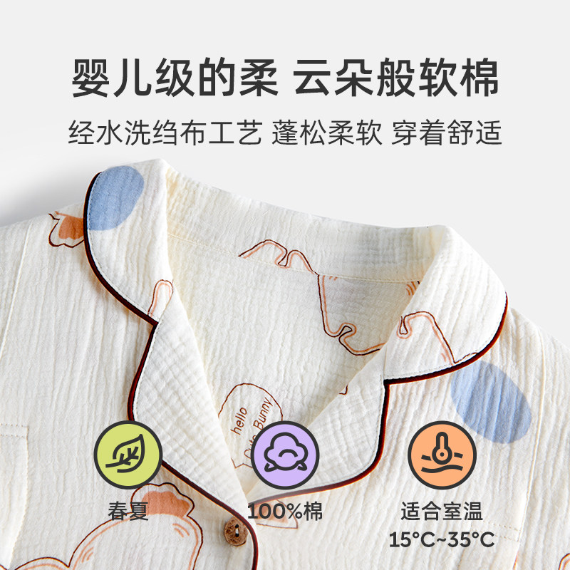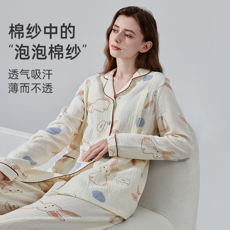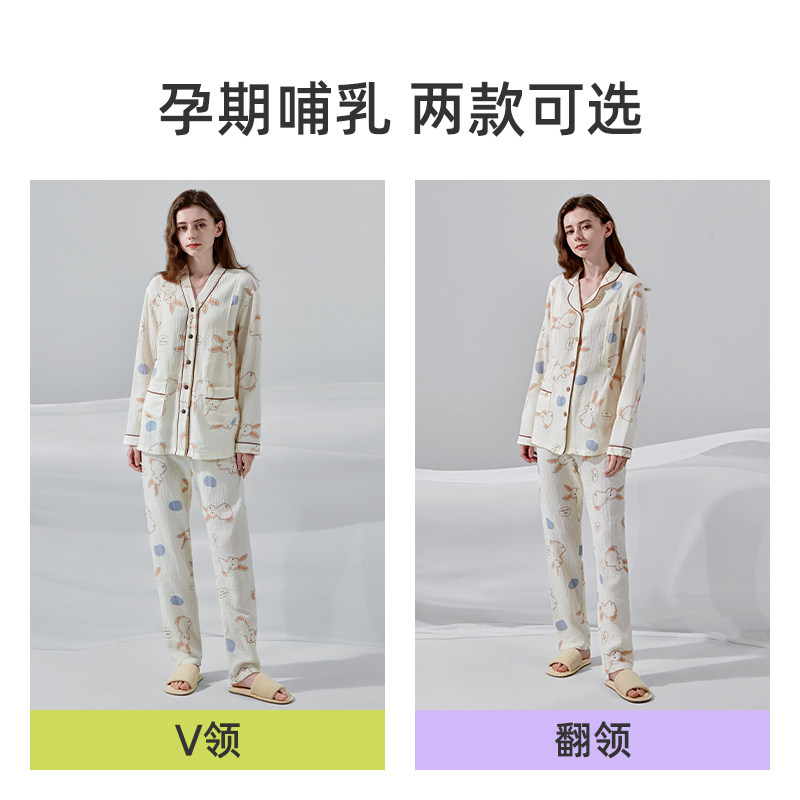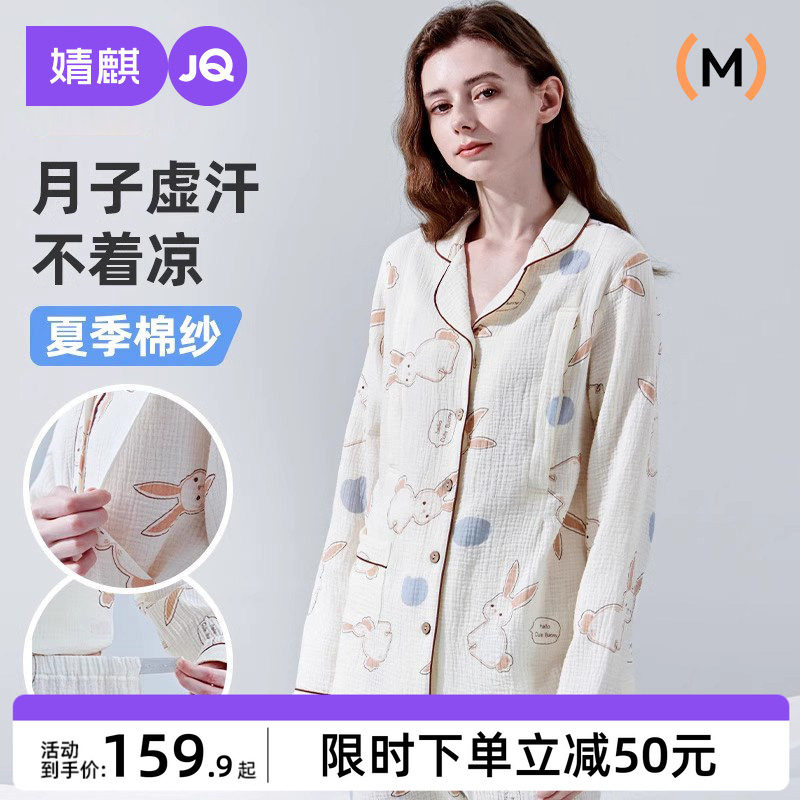 婧麒月子服春秋季产后纯棉纱布哺乳睡衣女夏款孕妇喂奶家居服套装