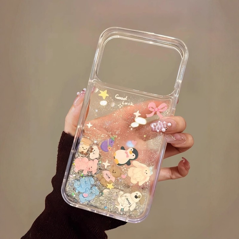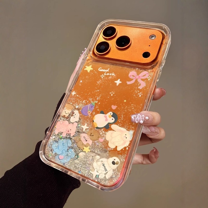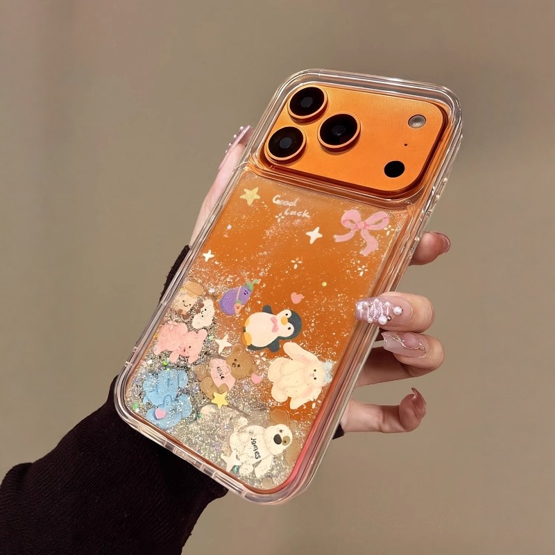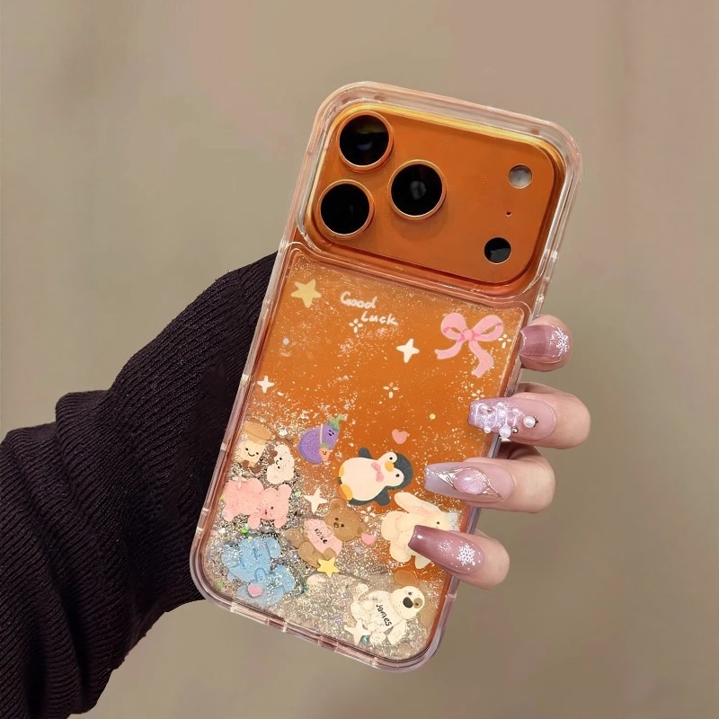 流沙金箔蝴蝶结小动物适用苹果17promax手机壳新款iphone16pro高级感透明15plus创意可爱14全包防摔13爆款套