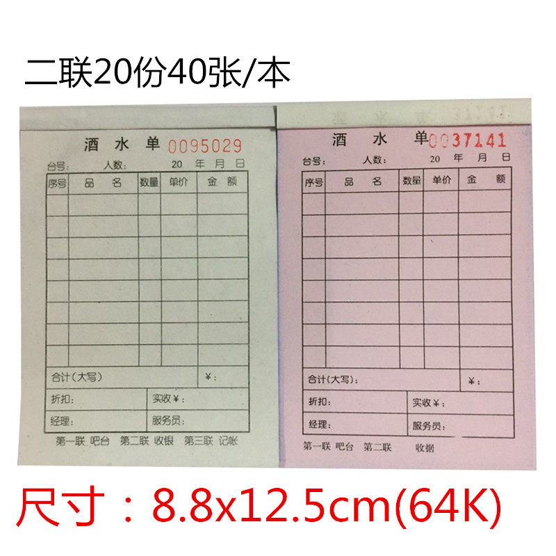 包邮72K二联三联酒水单加菜单酒吧饭店餐饮单点菜单记菜单收据