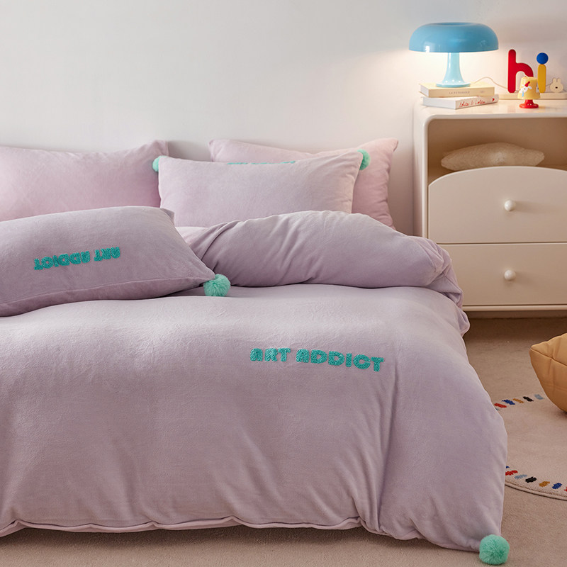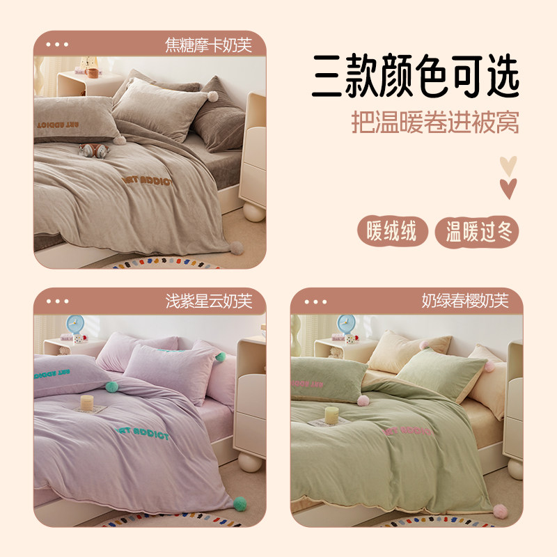 多喜爱多巴胺系列刺绣暖绒三/四件套加厚保暖珊瑚绒床单被套床品