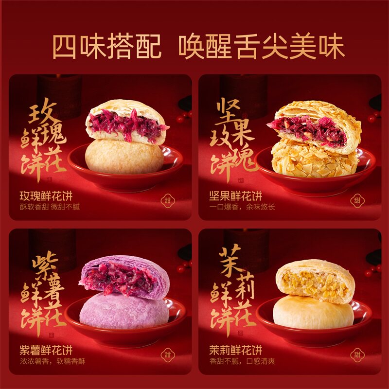 嘉华鲜花饼云南特产旗舰店玫瑰花糕点心小吃官方休闲零食早餐面包